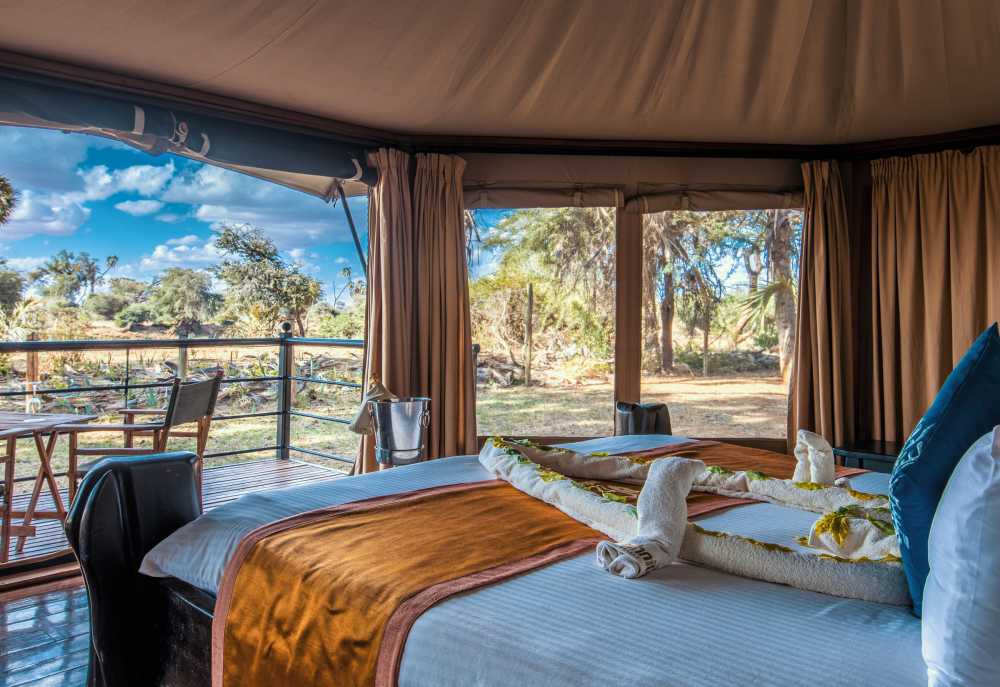 Im Camp schlafen die Gäste in luxuriösen Zeltchalets mit gemauertem Badezimmer, Holzfußboden und einer Terrasse mit herrlicher Aussicht. Die Einrichtung ist gediegen und modern in warmen Farben gehalten. Wie alle Ashnil Hotels wird auf hohen Komfort und Service viel Wert gelegt. Die Küche bereitet kulinarische Köstlichkeiten mit internationalen, orientalischen und afrikanischen Einflüssen zu. Eine offene Bar und Lounge sowie ein Pool laden zum Entspannen nach einem aufregenden Pirschfahrttag ein