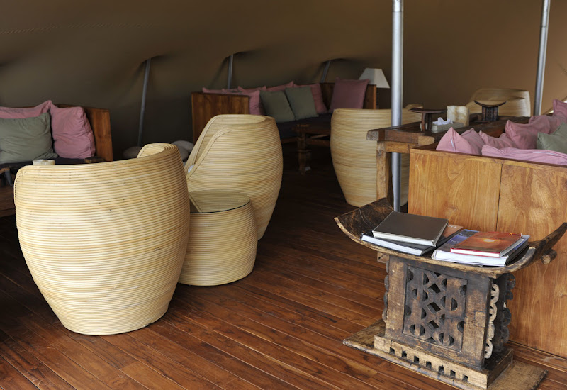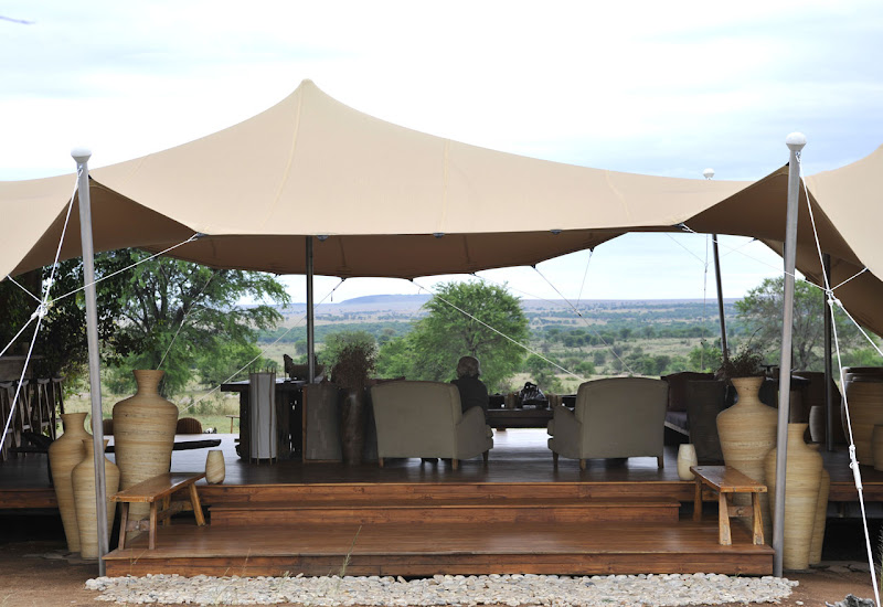 Sayari besteht aus zwei separaten Camps bzw. zwei Flügeln, die unabhängig voneinander betrieben werden. Das Hauptcamp umfasst neun, das kleinere Nebencamp sechs Zimmer. So kommen zwar bis zu 30 Gäste gleichzeitig in Sayari unter, aber sie sehen sich nicht, da zu jedem Flügel eine eigene Lounge und ein eigener Speisebereich gehören. Auf diese Weise bleibt das Camp klein und persönlich. Sehr persönlich und herzlich ist auch die Begrüßung durch die südafrikanische Managerin Tanya, die zusammen mit Maggy aus Tansania das Hauptcamp betreut. Eine hübsche, sehr adrette, gertenschlanke und strahlende Dame, die jedem Gast alle Wünsche erfüllen möchten - wenn es denn möglich ist. Sie erzählt uns, dass sie einmal mitten in der Nacht von einem Gast aus seinem Zimmer über Walkie-Talkie gerufen wurde, der sich darüber beschwerte, dass sein Zimmer von laut blökenden Gnus umgeben sei, er deshalb nicht schlafen könne und umgehend in ein anderes Zimmer wechseln wolle. Doch das Camp war zu dieser Zeit ausgebucht und die Gnu-Herde nicht nur bei seinem Zimmer...In Sayari sind alle Zimmer gleich gestaltet, außer der Honeymoon Suite. Diese ist noch weiter vom Hauptbereich entfernt und hat eine große Außenbadewanne aus Granit. Für Pirschfahrten stehen den eingeflogenen Gästen sechs offene Fahrzeuge zur Verfügung, die gemeinsam mit anderen Gästen genutzt werden. Privatfahrten sind auf Anfrage gegen Aufpreis möglich - oder man fährt Sayari mit eigenem Guide und Wagen an und hat kann seine Pirschfahrten dann ganz individuell gestalten. Buschwanderungen werden ebenfalls angeboten, diese sind jedoch nicht inklusive, da obligatorisch ein bewaffneter Nationalpark-Ranger mitgeht und bezahlt werden muss. George aus unserer Gruppe unternimmt eine solche Wanderung am letzten Morgen. Er erlebt zwar keine spektakulären Tiersichtungen, ist aber sehr angetan vom Wissen seines Guides. Auf Fußpirsch liegt der Schwerpunkt ohnehin auf den kleineren Dingen wie Spuren und Hinterlassenschaften der Tiere, Besonderheiten der Pflanzen, Ökologie und Geologie - und einem besseren Gespür für den Busch ohne schützendes Auto.