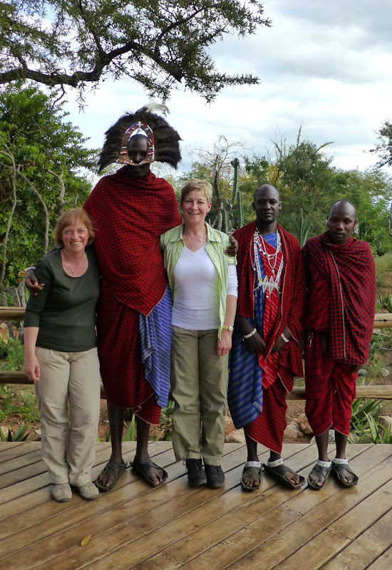 Nach netten Fotos mit den ansässigen Massai verabschieden wir uns. Die Heimfahrt nutzen wir nochmals für eine Pirschfahrt und durchqueren extra langsam durch den Tarangire Park, um vielleicht einen Leoparden zu sehen. Leider haben wir kein Glück. Kurz bevor wir das Oliver’s Camp wieder erreichen, treffen wir jedoch auf eine Herde Elefanten mit ihren Babys. Im goldenen Licht des späten Nachmittages trotten sie gemächlich fressend direkt vor unserem Auto über die Straße.Wir freuen uns über die tolle Erfahrung, die Elefanten so aus der Nähe zu sehen. Das entschädigt uns für die sonst spärliche Ausbeute des Nachmittages, die wir wegen des hohen Grases im Moment zu sehen bekommen. Als Inhaberin einer inoffiziellen "Frequent Game Driver Card" bin ich wohl auch einfach etwas verwöhnt. Die Sonne geht unter und zaubert zusammen mit den Wolken und den Bäumen am Horizont ein fantastisches Panoramabild.Wieder erreichen wir das Oliver’s Camp erst in der Dämmerung. Gern hätten wir noch an unserem Reisebericht geschrieben, nur leider hat sich der Akku unseres kleinen Notebooks verabschiedet und wir müssen erst einmal laden. Wie schon am vergangenen Abend nehmen wir unser Dinner an einem großen Tisch zusammen mit allen anderen Gästen des Camps ein. Es gibt Kartoffeln, Gemüse und Fleisch - alles sehr lecker. Beim Essen erfahren wir von unseren chinesischen Mitreisenden, dass Chinesen gar keine Katzen essen, dafür aber Vogelspucke zu den begehrtesten Delikatessen im Reich der Mitte zählt.