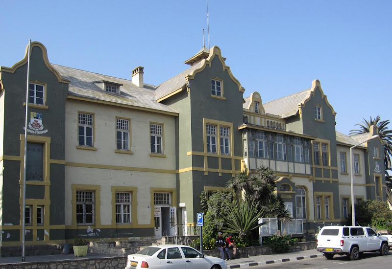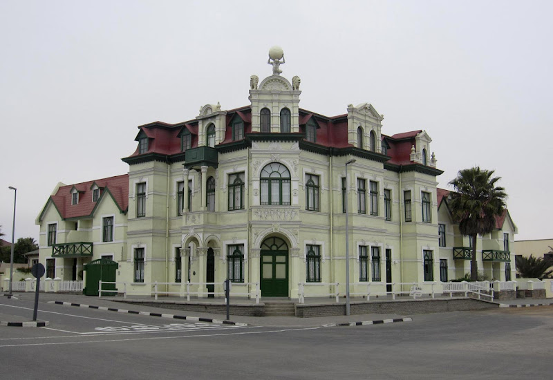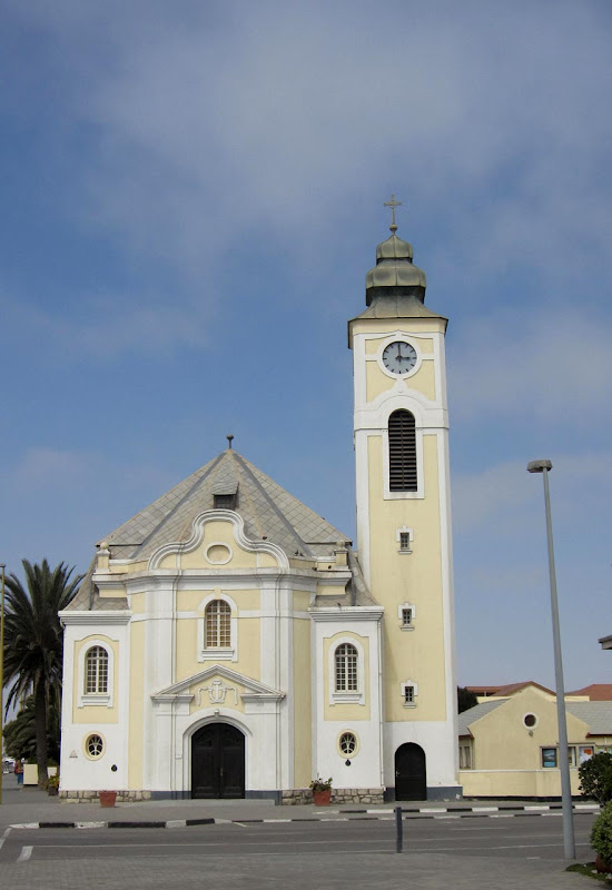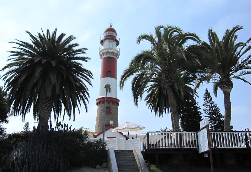10. Oktober 2012Swakopmund ist die wohl deutscheste aller Städte im Ausland, was für mich als deutsche Besucherin ein wenig merkwürdig ist. Hier gibt es unzählige deutsche Straßennamen und Geschäfte, deutschen Kuchen und Kaffee, deutschsprachige Ärzte usw. Sicher sind hier auch ein paar Steuerflüchtlinge aus Deutschland untergetaucht. Der Stadtkern selbst ist recht überschaubar, man findet alles, was der Tourist so braucht. Souvenir- und Outdoor-Läden, Restaurants und Cafés, historische und moderne Gebäude.