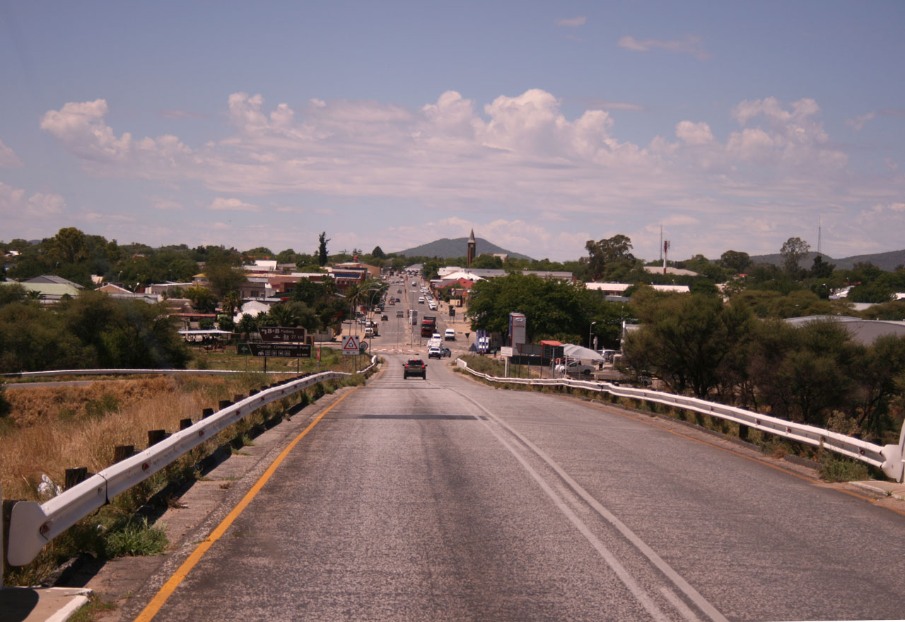 Nach dem Mittagsstopp besuchen wir noch einen Markt, wo es etliche Holzschnitzarbeiten zu sehen und zu kaufen gibt. Die Belagerung der Händler missfällt uns. Wir werden fast schon bedrängt zu kaufen und können gar nicht in Ruhe schauen, um uns für das ein oder andere Souvenir zu entscheiden.Der Kreis schließt sich, als wir Windhoek erreichen und der Bus auf die Independence Avenue einbiegt. Es ist merkwürdig, wir waren doch erst vor 12 Tagen hier und trotzdem erscheint es uns Jahre entfernt. Nun wird uns bewusst, dass die letzte Etappe unserer Reise begonnen hat.Nach Passieren der Stadtgrenze folgt das schlimmste Gerüttel, wir werden in unserem Reisebus hin und her geschleudert - wir befinden uns auf der Zufahrtsstraße zur Onjala Lodge. Nach einigen Asphaltstraßen sind wir das Geschüttel der Schotterpisten gar nicht mehr gewöhnt. Aber dass diese Straße die rustikalste Strecke unserer gesamten Fahrt ist, darüber sind wir uns einig. Nach einer Stunde haben wir es überstanden und werden von der kleinen Rezeptionistin Luzaan in der Onjala Lodge freundlich begrüßt.Das Gepäck wird für uns, wie in fast allen Unterkünften, auf unsere Zimmer gebracht. Wir selbst bekommen ein eisgekühltes feuchtes Tuch und ein Erfrischungsgetränk gereicht und erhalten Informationen über die Lodge und die optionalen Ausflüge, die wir während unseres Aufenthaltes buchen können.Alex sieht, dass wir in guten Händen sind und verabschiedet sich. In Kürze wartet die nächste Gruppe Reisende darauf, mit ihm Namibia zu entdecken und seinen Geschichten zu lauschen. Von der Aussichtsplattform am höchsten Punkt der Onjala Lodge können wir unseren Reisebus davon fahren sehen. Alex hört unsere Rufe und Pfiffe, hält an und winkt uns aus dem Busfenster ein letztes Mal zu, dann verschwindet der Bus, eine Staubwolke hinter sich herziehend, in der Ferne.