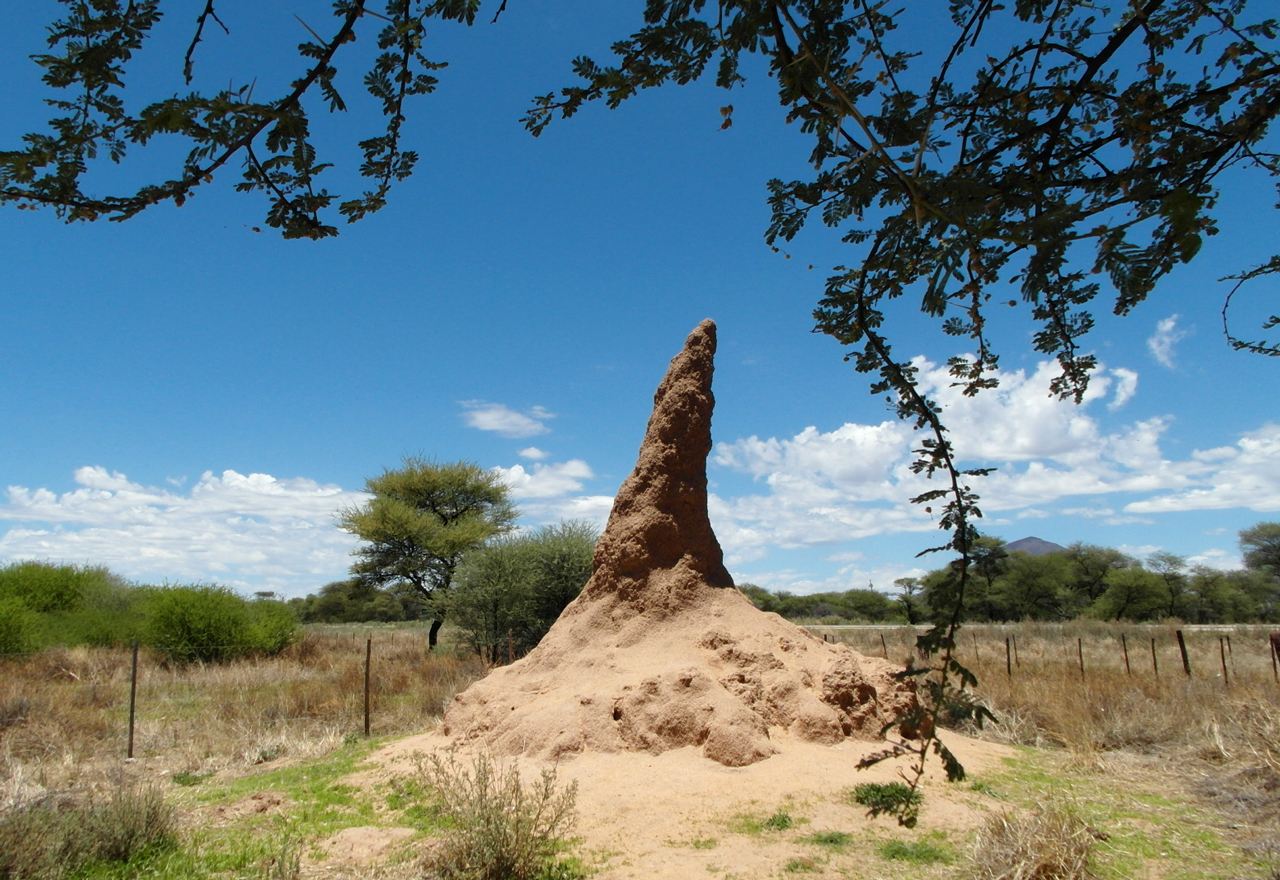 Es geht zurück nach Windhoek und vorbei an weiteren Orten mit O - Otawi, Otjiwarongo und Okahandja. Wir halten am höchsten Termitenhügel, den wir auf unserer Reise zu Gesicht bekommen haben.