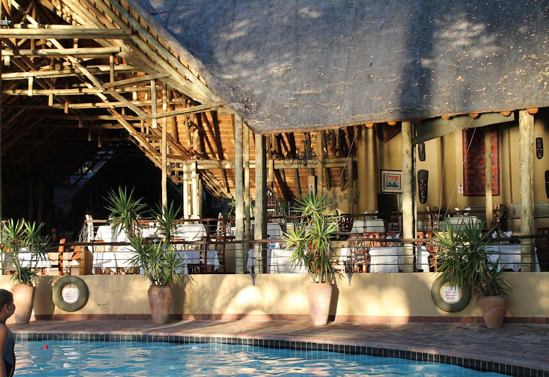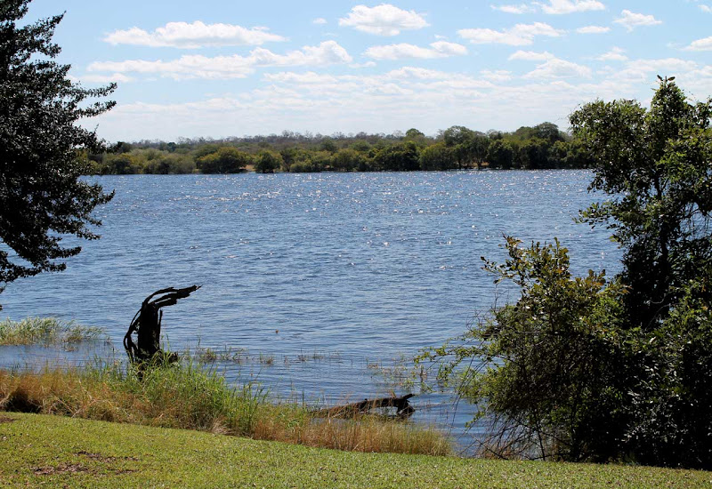KasaneIn Kasane schauen wir uns zwei Unterkünfte an. Die erste ist die Kubu Lodge. Diese Unterkunft verkaufe ich gern und oft. Die Realität zeigt mir, dass ich recht hatte. Die Lodge liegt in einem wunderschönen schattigen Garten. Die Bungalows scheinen mir ein wenig dunkel, aber vielleicht ist das ja gar nicht so schlimm. Wenn man von einer langen Pirschfahrt zurückkommt, will man eigentlich nur duschen und ein bisschen relaxen. Dazu lädt der Garten ein. Es gibt einen kleinen Pool. Die Bungalows liegen alle am Hang mit Blick auf den Chobe. Ein tolles Ambiente – leider nichts für Menschen, denen das Gehen schwer fällt, für Rollstuhlfahrer schon gar nicht. Die Lodge hat 11 Bungalows, einer davon ist für Familien geeignet. Bis in den Chobe Nationalpark hat man etwa 20 Minuten zu fahren. Die Lodge ist die erste Lodge nach der Grenze zu Simbabwe.