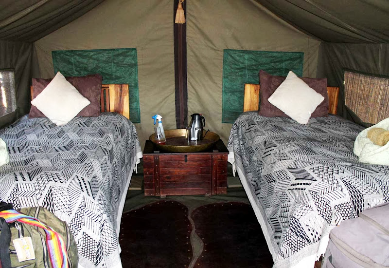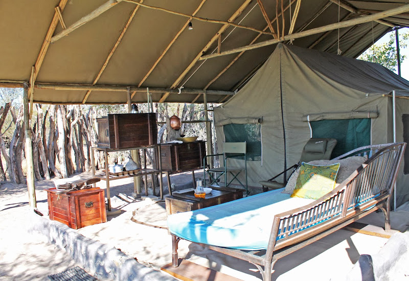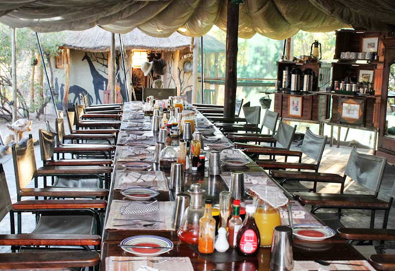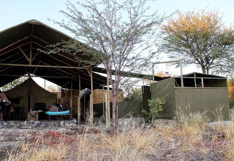 Meno a Kwena Tented Camp. Wir befinden uns nahe des Makgadikgadi Nationalparks. Viele verwechseln den Nationalpark mit den berühmten Salzpfannen. Die befinden sich zwar im Park, aber doch ein ganzes Stück von Meno a Kwena entfernt. Wer also die Salzpfannen von hier aus sehen möchte, kann das mit einer Übernachtung in den Pfannen gerne tun. Für einen Tagesausflug sind die Pfannen aber zu weit weg. Planen Sie also mindestens 3 Nächte für den Nationalpark ein! Es lohnt sich mit Sicherheit.Leider können wir die Leroo la Tau Lodge nicht anschauen, weil sich der Präsident von Botswana, Seretse Khama Ian Khama dort aufhält. Wir sehen auf dem Airstrip nur seine Maschine und die Piloten, die wir dann später auch in Meno a Kwena, unserer nächsten Station, wieder treffen.Auch Meno a Kwena kenne ich schon. Bei meinem letzten Besuch fing der Boteti gerade wieder an zu fließen. David Dugmore, der Eigentümer hatte damals große Pläne. Er träumte von Kanufahrten und Angelausflügen. Nun hat sich der Boteti zu einem großen ruhigen Strom gemausert und ich bin überwältigt. Tatsächlich kann man nun hier auf dem Fluss Bootsfahrten unternehmen, ein schwimmendes Beobachtungsdeck wurde gebaut und Flusspferde tummeln sich im Wasser. Was für ein Schauspiel!!Das Camp selbst soll in den kommenden Monaten Stück für Stück „aufgehübscht“ werden. Es ist eine recht rustikale Anlage in der Nähe des Nationalparks. Es gibt in den Zelten kein fließend Wasser, die Buschdusche wird auf Wunsch gefüllt, die Beleuchtung ist sparsam. Alle Wege innerhalb eines Zeltes werden Stück für Stück überdacht. So kommt man dann trockenen Fußes vom Zelt zur Toilette oder zur Dusche, wenn es doch einmal regnen sollte. Ich hatte Glück und hatte ein Zelt, das schon zum Teil erneuert wurde. Aber auch die Zelte selbst werden ausgetauscht. Der öffentliche Bereich spiegelt eigentlich das Wesen von David, dem Eigentümer wider. Alles erinnert an die alten Entdecker, die Schränke bestehen aus Transportkisten, man findet überall originelle Fotos und auf der öffentlichen Toilette braucht man schon deshalb länger, weil sie auch eine kleine Bibliothek beinhaltet und viele Stationen aus Davids Leben in Form von Fotos erzählt. Er ist überhaupt eine sehr beeindruckende Persönlichkeit. Sogar die royalen Sprösslinge Englands gehen mit David auf Campingtour und versuchen so, dem öffentlichen Leben ein wenig zu entfliehen. Auch der botswanische Präsident hat direkt nach uns das Camp und natürlich David für sich gebucht.