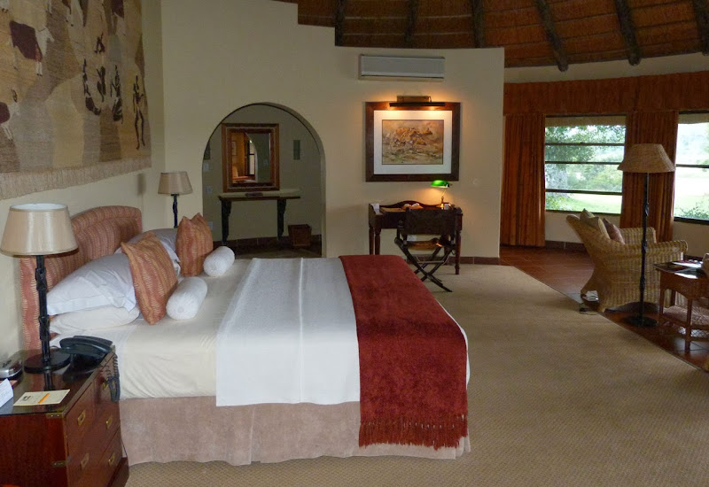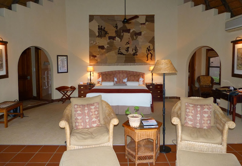 Die Bungalows erstrecken sich links und rechts des Hauptbereichs, zu dem das Restaurant, eine einladende Lounge mit Kamin, eine Bar, der Weinkeller, der Speiseraum und eine große Terrasse gehören. Unter der Terrasse versteckt befinden sich zudem eine kleine Bibliothek und ein Videozimmer für die Kids. Neben dem großen Pool ist auch der Fitnessraum samt Dampfbad zu finden. Auf der anderen Seite des Hauptgebäudes wird in der Boma so oft wie möglich das Abendessen eingenommen. Hinter der Boma schließt sich dann der imposante Ankunftsbereich mit Rezeption und Souvenirshop an.Obwohl man theoretisch von den Zimmern der Lodges aus die Big Five beobachten kann, dies aber ziemlich lange dauern kann, begebe ich mich mit meinem Ranger Yuri auf Pirschfahrt.Kurz nach Beginn der Pirsch begegnen wir bereits den ersten Löwen. Zwei Löwinnen kommen direkt auf der Straße auf uns zugelaufen, als wir uns entlang des Sand Rivers unseren Weg bahnen. Yuri erzählt mir, dass es sich um Cousinen handelt und eine der beiden Löwinnen Jungen hat. Er vermutet, dass sie nun auf der Suche nach ihnen ist, denn sie stößt kleine Alarm-Rufe aus. Wir fahren off-road und folgen den beiden.Wenige Meter später taucht tatsächlich das Löwenrudel mit den Jungtieren auf. Die Löwenkinder springen auf und begrüßen herzlich ihre Mutter. Es gibt Streicheleinheiten von der Löwenmutter und es werden "Zungenküsse" verteilt. Eine der Löwinnen scheint etwas nervös zu sein und hält nach irgendetwas Ausschau. Yuri meint, sie warte noch auf die Herren der Schöpfung, die bislang noch durch Abwesenheit glänzen. Und tatsächlich tauchen kurze Zeit später nun auch noch die Löwen-Männer auf. Auch sie werden mit Schmusegesten herzlich vom Rest der Truppe begrüßt. Wir verweilen noch ein paar Minuten an dieser Stelle, während im Hintergrund malerisch die Sonne sinkt. Das Rudel scheint erschöpft zu sein, denn ein Tier nach dem anderen legt sich auf die Seite oder den Rücken und streckt alle vier Pfoten von sich. Das machen sie, um sich abzukühlen, klärt Yuri mich auf.Nach dem die Sonne untergegangen ist wird es rasch dunkel und auch kühl. Wir fahren mit angeschaltetem Suchscheinwerfer, den Yuri lässig in der rechten Hand hält während er mit der linken Hand schaltet und lenkt. Das würde ich keine Viertelstunde aushalten. Yuri funkt seit ein paar Minuten aufgeregt mit den anderen Rangern hin und her. Scheinbar sind die anderen Fahrzeuge einem Leoparden auf der Spur. Sie benutzen zwar die Shangaan-Worte für die Big 5 (Sprache der Einheimischen), aber mittlerweile verstehe auch ich ein paar der Wortfetzen. Wir passieren ein trockenes Flussbett, als Yuri plötzlich stoppt. Er hat ein Flusspferd beim Grasen entdeckt, es muss wohl gerade erst nach Einbruch der Dunkelheit aus dem Wasser gekommen sein. Da diese Tiere zu den gefährlichsten Geschöpfen Afrikas überhaupt zählen, hält er einen gebührenden Abstand. Auch ich habe die "Hippos" auch noch nie in voller Pracht außerhalb des Wassers gesehen, wo sie die meiste Zeit des Tages verbringen. Extrem, diese ausufernden Maße, insbesondere wenn man bedenkt, dass sich diese Riesen ausschließlich von Gras ernähren. Mir gelingen ein paar gute Schnappschüsse, denn Yuri berät mich sogar, welche Einstellungen ich bei Dunkelheit an meiner Kamera vornehmen muss. Sehr beeindruckend.Wir verlassen das Flusspferd und bleiben weiter auf der Suche nach dem Leoparden. Zusammen mit zwei anderen Fahrzeugen grenzen wir das Gebiet, in dem er zuletzt gesehen wurde, immer weiter ein. Die anderen Fahrzeuge geben recht bald wieder auf und fahren weiter. Yuri hat aber wahrscheinlich der Ehrgeiz gepackt und fährt weiter durch das dichte Gras- und Buschland. Und tatsächlich: Yuri findet zunächst einen Springbock, der unbedarft allein in der Dunkelheit grast. Er weiß nicht um die Gefahr, die ihn umgibt. Denn wenige Meter weiter liegt der gesuchte Leopard im dichten Gras auf der Lauer. Sollte ich tatsächlich heute Abend Zeuge werden, wie er den Springbock reißt? Mein Herz schlägt sofort höher und ein wenig Mitleid habe ich mit der Antilope schon. Yuri stellt den Motor ab und scannt kurz mit seinem Spotlicht die Umgebung ab, schaltet es aber dann gleich wieder aus. Man hört, wie der Leopard langsam durch das hohe Gras schleicht. Dann ist Stille. Yuri meint, dass sich die Katze nun unter unserem Auto befindet. Mein Herz schlägt mir bis zum Hals. Als Yuri das Licht wieder kurz anmacht liegt der Leopard direkt vor unserem Auto und sucht den Springbock, der sich in der Zwischenzeit unbemerkt davon geschlichen hat. Glück für den Bock, Pech für die Katze. Mir gelingt es noch, ein schönes Video davon zu drehen, wie der Leo mit gesenktem Kopf und etwas enttäuscht von Dannen zieht. Fast schon nebensächlich zu erwähnen, dass wir an diesem Abend auch noch Hyänen und ein schön anzuschauendes Chamäleon gesehen haben.Auch am nächsten Morgen hält MalaMala, was es verspricht: Tierbeobachtungen auf höchstem Niveau. Gleich nach dem Start der Pirschfahrt stoßen wir auf eine Herde Nashörner, die wir augenscheinlich aus dem Schlaf gerissen haben. Sorry guys! Kurz darauf entdecken wir einen Büffel, der zwei trinkende Kudus am Sand River beobachtet und schließlich selbst seinen Durst am Fluss stillt. Nach ein paar Minuten dann die nächste aufregende Begegnung. Ein weiterer Leopard kauert mitten auf der Straße und macht sich an den Hinterlassenschaften eines Elefanten zu schaffen. Wir folgen ihm für ein paar Meter entlang der Straße. Er lässt sich von uns gar nicht stören. Schließlich verschwindet er im dichten Busch. Wir versuchen, ihm noch ein wenig länger off-road zu folgen, verlieren ihn aber recht bald.Abgerundet wird die morgendliche Pirschfahrt von einem Elefanten, der gerade einen Baum umgedrückt hat und nun sein Frühstück einnimmt. Besser geht es nicht: Alle Big Five auf zwei Pirschfahrten entdeckt. Ich werde damit in den „Big Five Club“ aufgenommen, was ich auch 