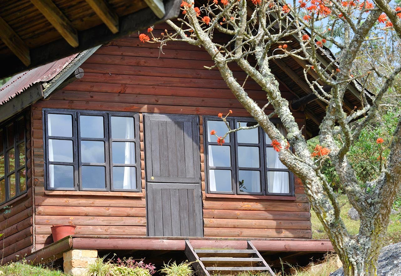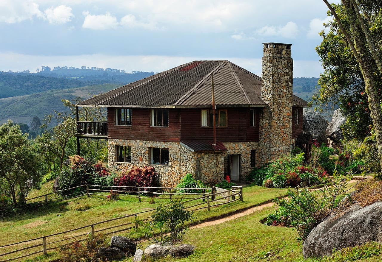 Hier auf etwa 1800 Metern zeigt das Thermometer nur 14 Grad, am Morgen sind die Temperaturen einstellig. Jeanie trägt einen Wollpullover, wir holen die langärmeligen Pullis und Fleecejacken aus dem Gepäck. In unserer gemütlichen Blockhütte ist genug Platz für uns vier. Für die Kinder gibt es ein solides Etagenbett. Das große Bad bietet Dusche, Badewanne und zwei Waschbecken. Alles ist schon etwas in die Jahre gekommen, aber liebevoll eingerichtet und mit frischen Blumen dekoriert. Wir haben sogar eine Terrasse und einen Vorgarten mit kurzgeschnittenem Rasen und blühenden Blumenstauden. Weitere zehn Hütten gibt es auf dem großen Gelände, die meisten für zwei Personen und ohne Badewanne, aber alle mit schönem Blick von der Anhöhe herab in die Weite der südtansanischen Berglandschaft.