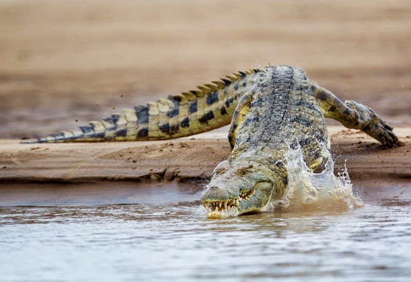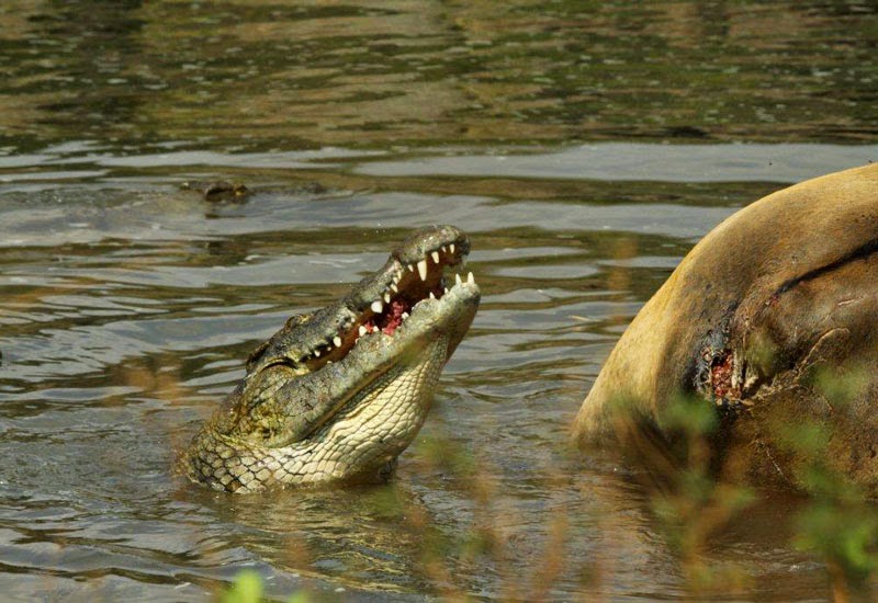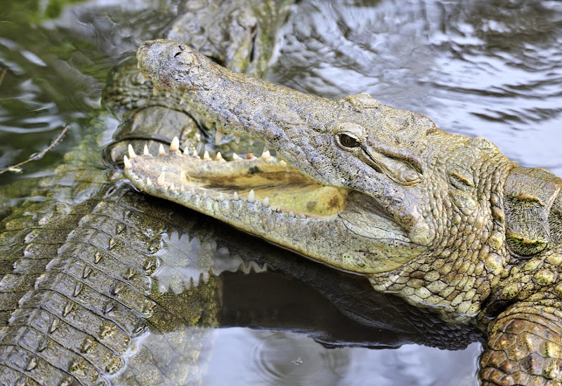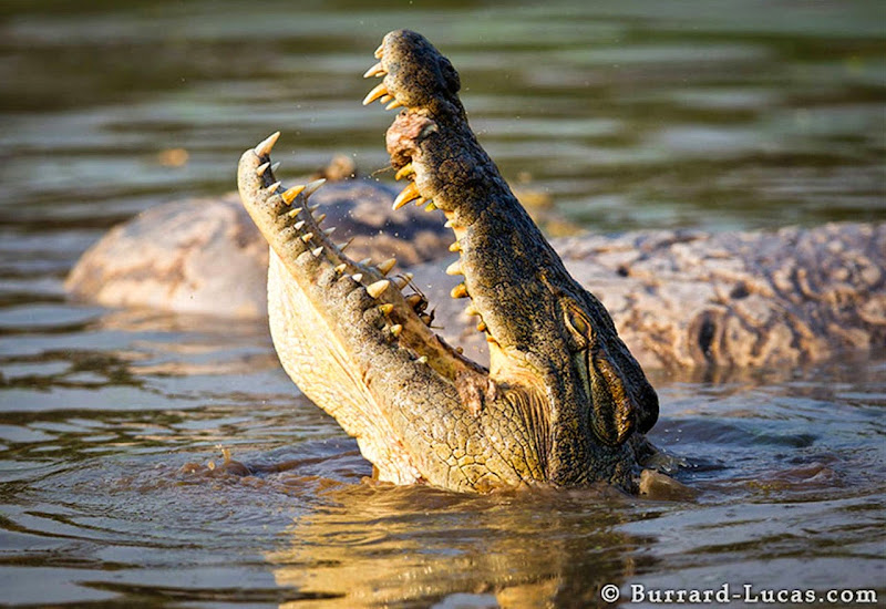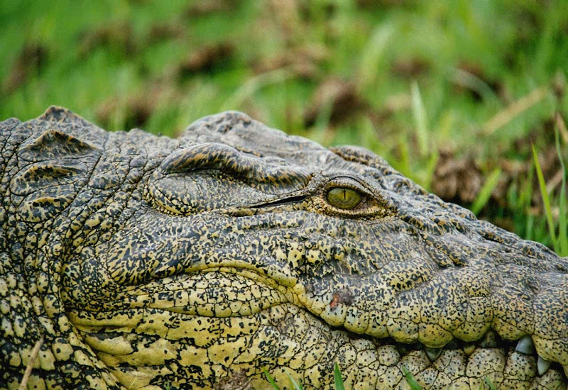 Das Nilkrokodil (Crocodylus niloticus) ist am weitesten verbreitet und verdankt seinen Namen der Tatsache, dass es in früheren Zeiten am gesamten Nilverlauf anzutreffen war. Heute kommt es nur noch in Teilen des Nils vor, jedoch ist es in fast allen anderen größeren Flussläufen und Feuchtgebieten im südlichen und zentralen Afrika heimisch. Nilkrokodile teilen sich häufig den Lebensraum mit dem Panzerkrokodil. Beide Arten unterscheiden sich durch abweichende Schädelformen. Wie alle Reptilien sind sie wechselwarm und mögen Temperaturen unter 15 Grad Celcius nicht. Je wärmer es ist, desto besser können sie sich bewegen, bei Kälte erstarren sie.Mit der schuppigen Haut, den oben liegenden Augen und Nasenlöchern, dem kräftigen Schwanz, Schwimmhäuten und natürlich durch das extrem starke Gebiss sind sie perfekt an den Lebensraum Wasser angepasst, können sich aber auch an Land mit ihren kräftigen Beinen gut fortbewegen. Dies wird von Beutetieren häufig unterschätzt, ebenso die Fähigkeit, sich lautlos unter Wasser dem Opfer zu nähern und unter der Wasseroberfläche für lange Zeit regungslos zu warten. Trinkende Tiere wie Antilopen und Zebras werden gepackt, ins Wasser gezerrt und ertränkt. Die Hauptnahrung besteht jedoch aus Fisch, Insekten und Amphibien. Bei sehr großen Tieren verbünden sich mehrere Krokodile zur Jagd, ansonsten sind sie eher Einzelgänger. Neben den Hyänen und Raubvögeln fressen Krokodile auch Aas und verhindern so die Ausbreitung von Seuchen. Die Zähne wachsen nach, im Laufe eines Lebens kann es ein Krokodil auf rund 3000 Zähne bringen. Da der Unterkiefer starr ist, können Krokodile nicht kauen. Sie reißen Stücke aus ihren Beutetieren und verschlingen diese ganz. Dabei drehen sie sich oft sehr schnell um ihre Längsachse, um ein Stück Fleisch abzureißen.