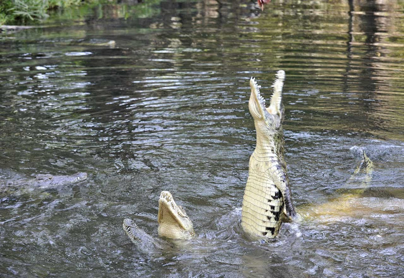Echse trifft auf Krokodile dabei eigentlich nicht zu, sie sind nur biologisch mit Echsen verwandt und weisen ähnliche körperliche Merkmale auf.Man findet Krokodile in verschiedenen Unterarten in tropischen und subtropischen Gebieten auf der ganzen Welt. Auch in Europa wurden einzelne Krokodile in warmen Abwasserbecken gefunden, die vermutlich als Haustiere gehalten und „entsorgt“ wurden. In Afrika sind vor allem drei Arten heimisch: das Nilkrokodil, das Panzerkrokodil und das Westafrikanische Krokodil. Alligatoren findet man dagegen in Nord- und Südamerika und in Asien. Einfachstes Unterscheidungsmerkmal zwischen Krokodilen und Alligatoren sind die kürzere Schnauze und die bei Krokodilen sichtbaren Eckzähne.