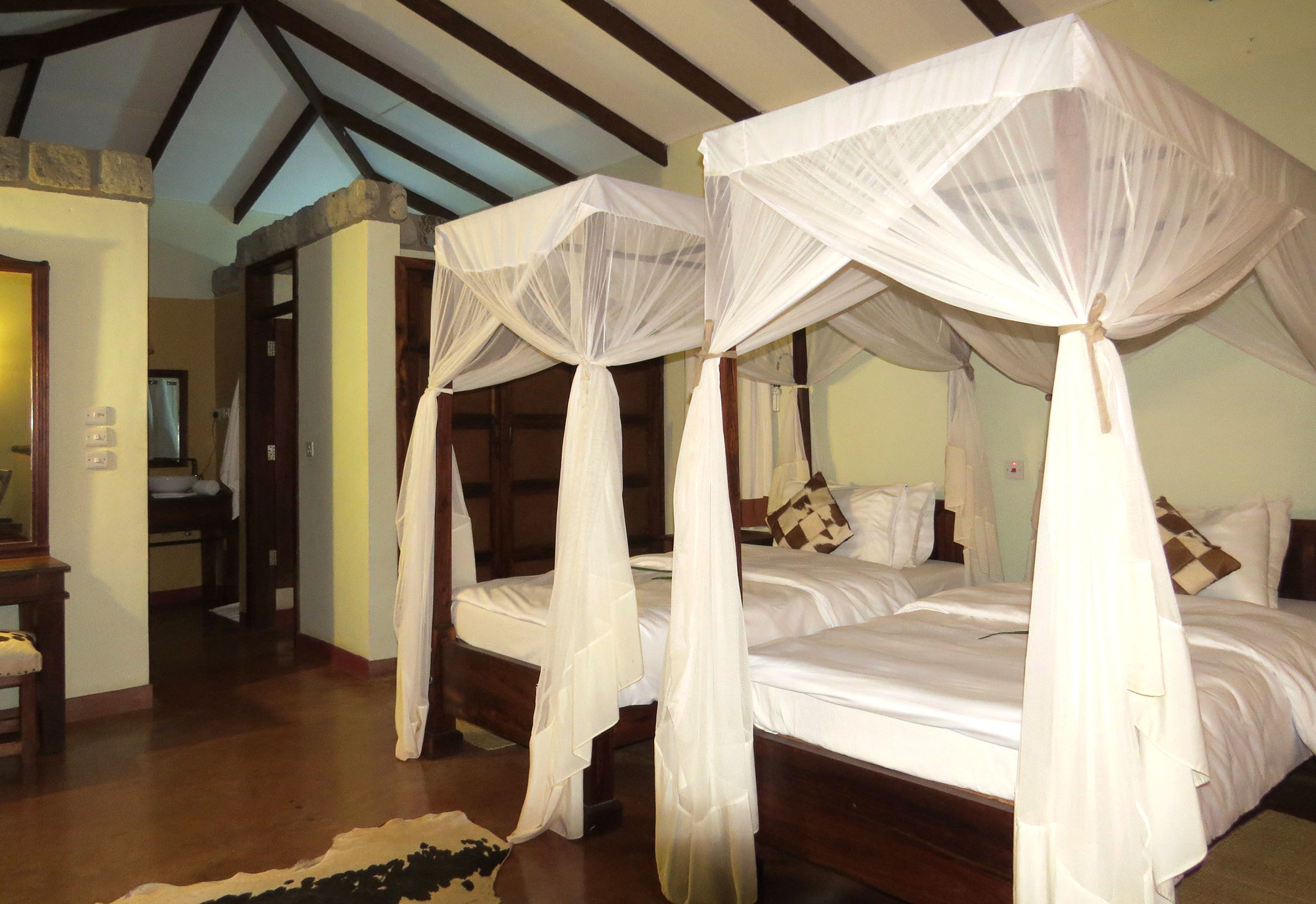 Der Askari steht bereit und trägt meine Tasche zur Rezeption. Auch das Frühstücksbüffet ist sehr schön dekoriert, es gibt frisches Obst und „Live Cooking“ für gebratene Eier und Omeletts.Wir haben bei der Rückfahrt aus der Serengeti hier nochmals übernachtet und sind etwas früher angekommen. Der Pool ist wirklich schön erfrischend und ein Angestellter eilte gleich herbei, um uns mit Kaffee, Gebäck, Popcorn und gebratenen Hühnerflügeln zu versorgen. Sehr nett!