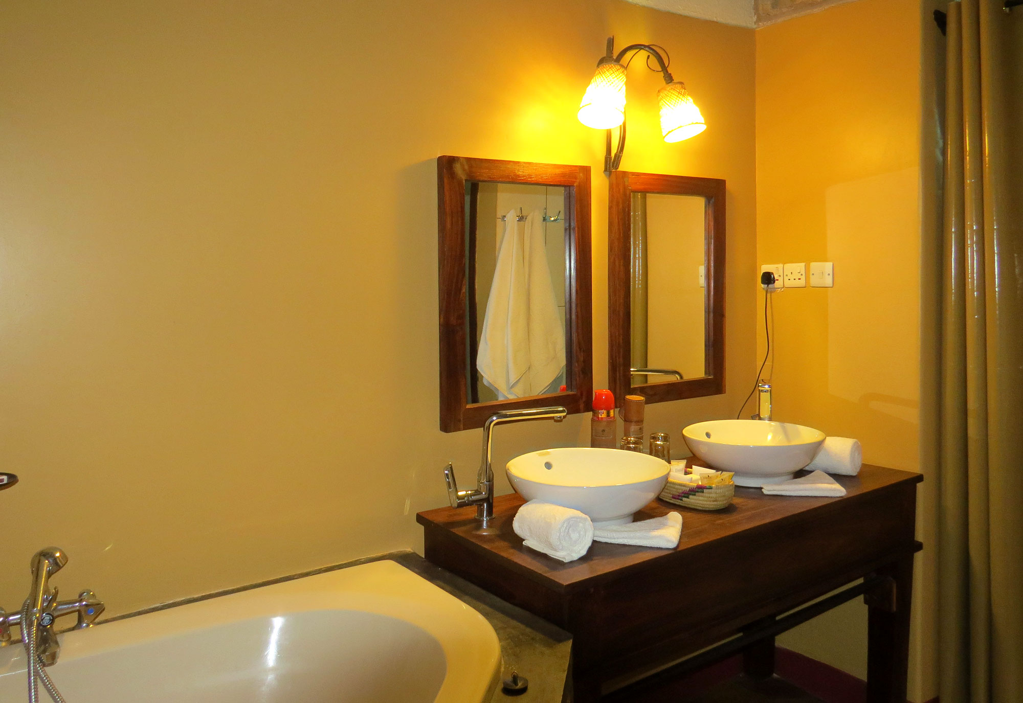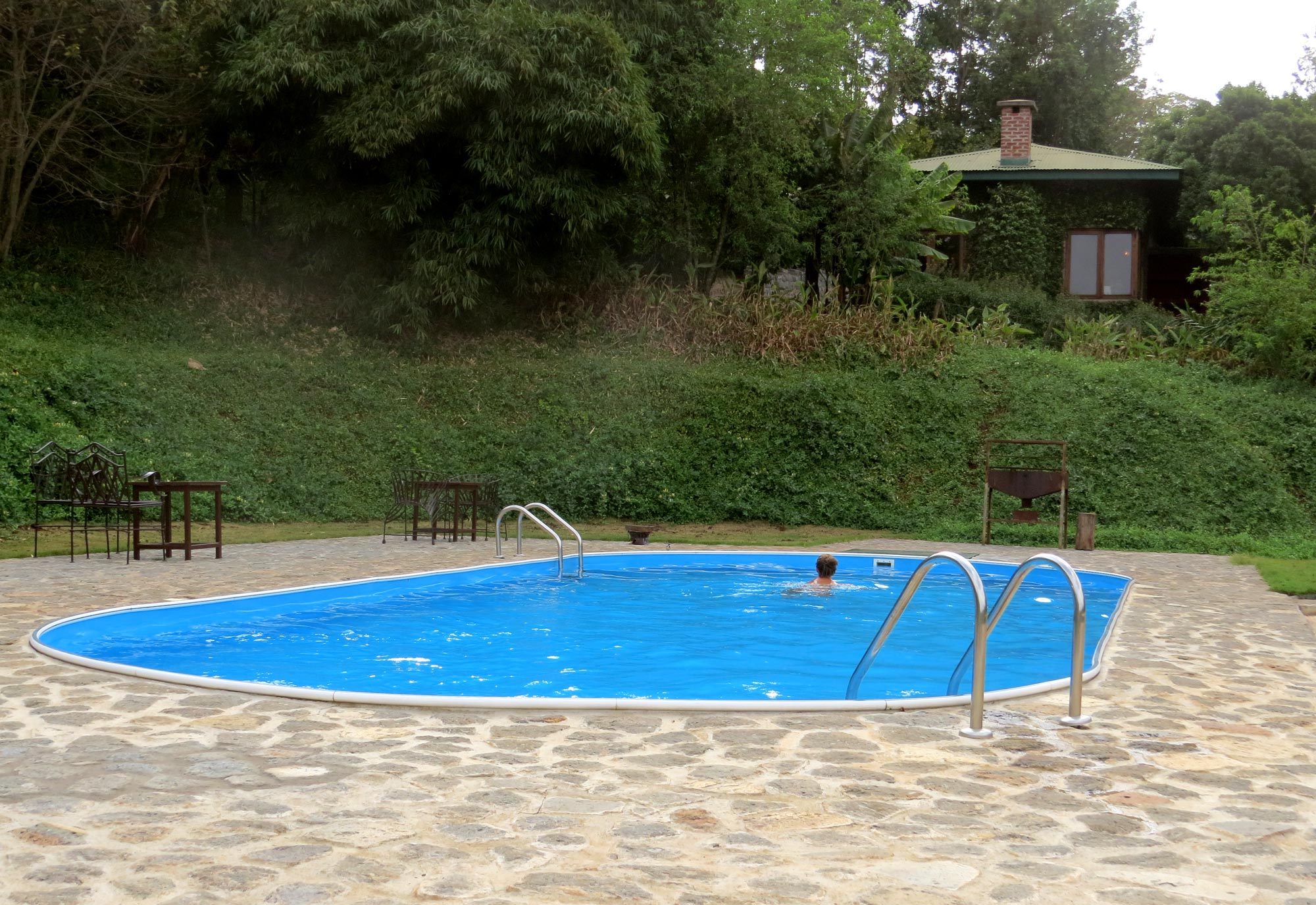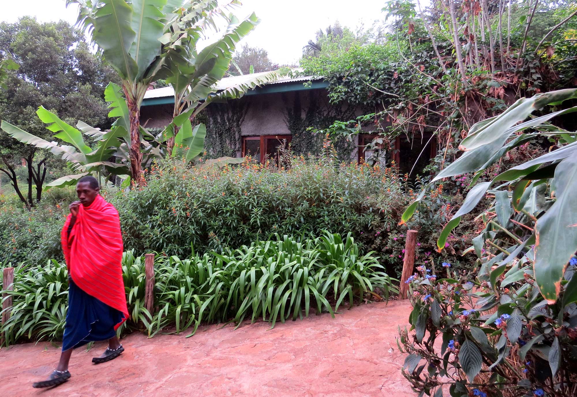 Frei übersetzt bedeutet das: „Fröne der Natur“ und Natur gibt es hier wirklich reichlich. Der Berghang, an dem die Bungalows gebaut wurden, ist mit Bananenstauden und Bäumen dicht bewachsen. Frönen kann man der Natur auch beim Duschen in der Außendusche. Vermutlich gedeiht deshalb alles hier so gut - die Reisenden bringen die Erde aus Tarangire und der Serengeti mit, duschen draußen und das Wasser düngt dann direkt den Garten. Ich nehme ein schnelles Bad im Pool und will nur mit einem T-Shirt und Handtuch bekleidet wieder in der schützenden Dunkelheit verschwinden.