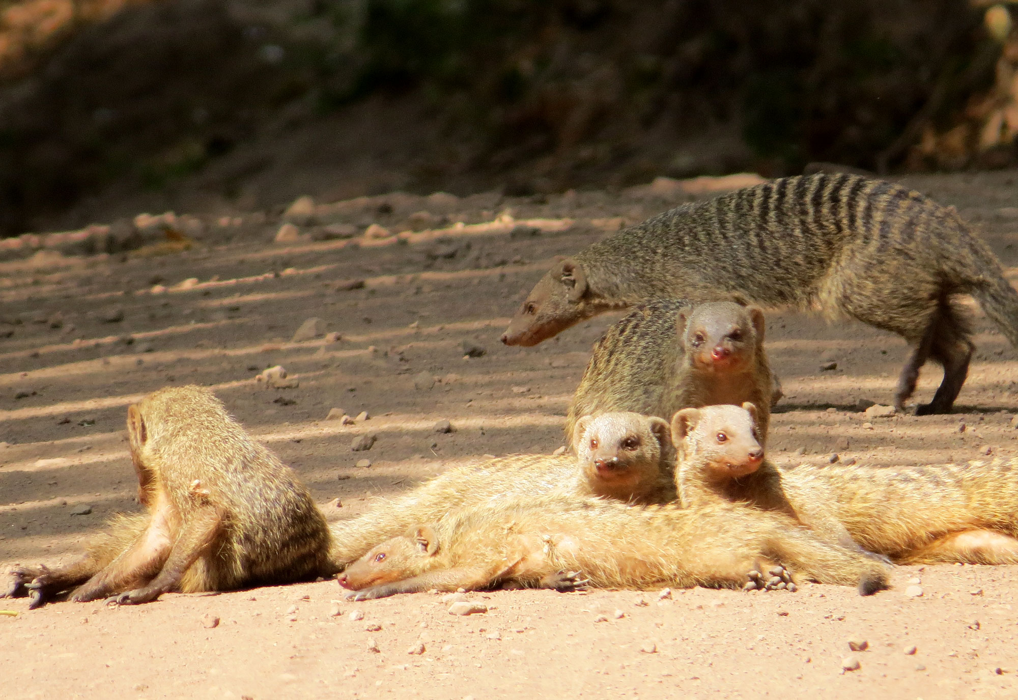 Der letzte Nationalpark unserer Safari ist der Lake Manyara Nationalpark. „Um diese Jahreszeit ist da nicht viel los“, sagte mir Debbie vor der Abfahrt. Trotzdem ist es ein wirklich schöner Park mit viel Vegetation und einigen größeren Wasserlöchern. Schade ist, dass man nicht direkt bis ans Ufer des Manyara-Sees fahren kann, wo sich die Flamingos versammeln. Man sieht sie immer nur als rosa Streifen sehr weit entfernt. Wir treffen auf einige freche Diadem-Meerkatzen und eine Pavianfamilie, außerdem auf eine Mangusten-Familie, die im Schatten liegt. Einige Elefanten, Warzenschweine und Zebras grasen auf den weiten Ebenen.