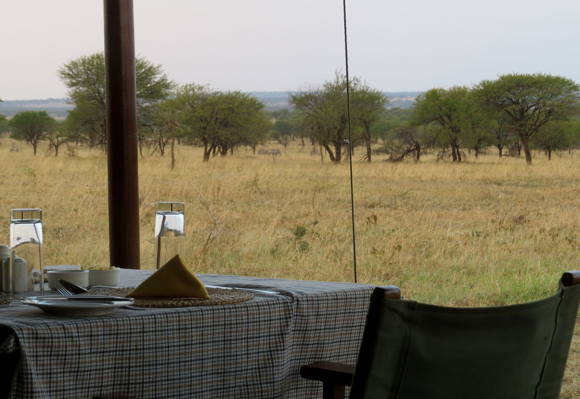 Unser Fahrer Erick, der regelmäßig bei den Camp-Umzügen mithilft, erzählt mir, dass es immer rund eine Woche dauert, bis alles wieder an seinem Platz ist. Wie bei einem richtigen Umzug müssen erst die Zelte, die an einem Standort zum Schluss abgebaut werden, am anderen Standort zuerst wieder aufgebaut werden, bevor man die Betten, Waschtische, Kleiderständer und den ganzen Kleinkram wieder einräumen kann. Ein ganz schöner Aufwand. Hinzu kommt, dass die Standplätze nicht immer die gleichen sind, sondern in jeder Saison neu vergeben werden. Mal bekommt man also einen guten Standort, mal einen weniger guten. Der jetzige Standort hat eine leichte Hanglage, aber dafür einen sehr schönen Blick in die Serengeti.