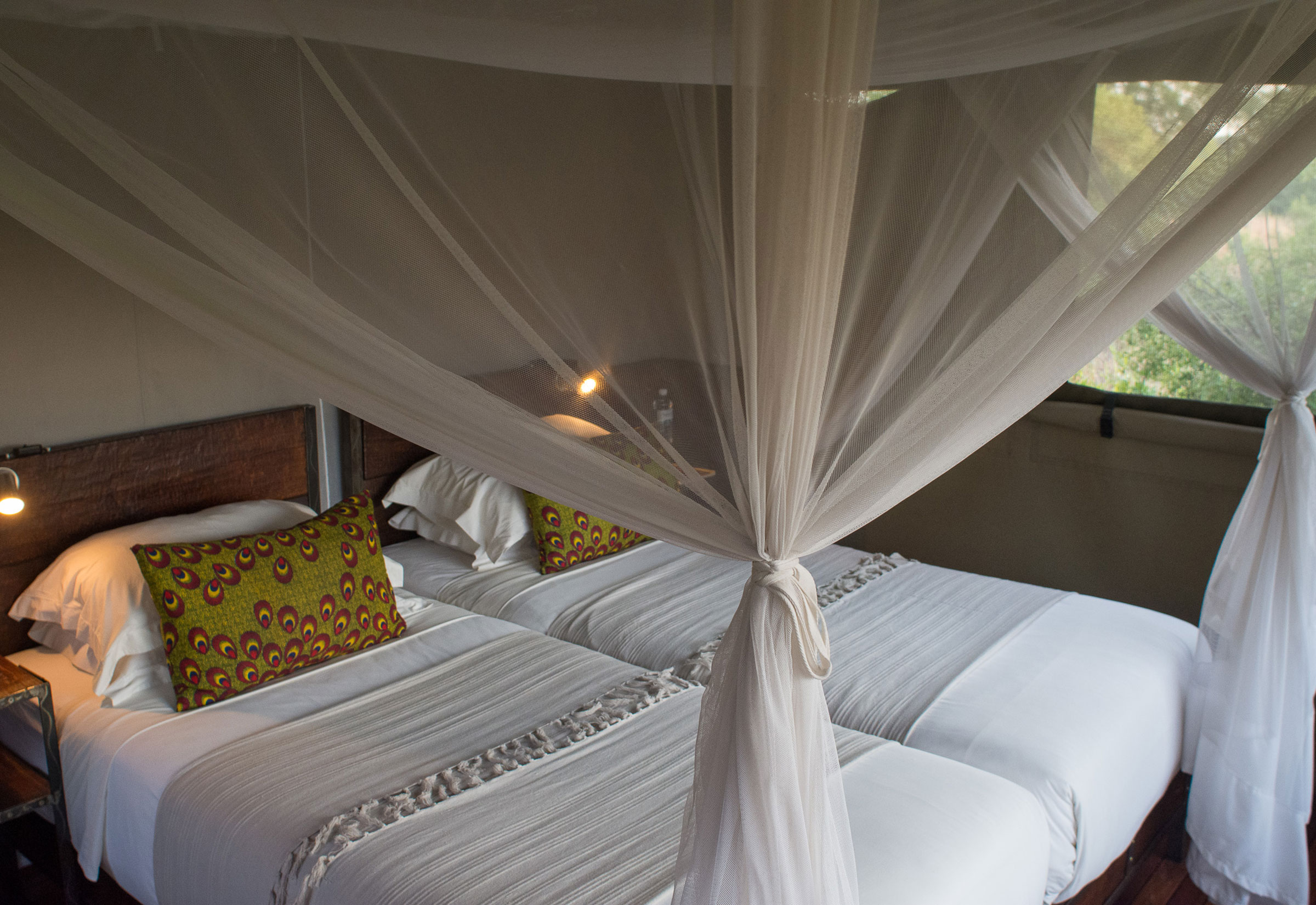 Mit einer offenen Lounge unter Zeltdach, Klappstühlen zum Entspannen und Paraffinlampen zur abendlichen Beleuchtung bewahrt das Camp viel von der Atmosphäre klassischer Zeltsafaris. Das Preis-Leistungs-Verhältnis von Sango passt. So haben wir als Reiseveranstalter eigentlich nur ein Problem mit diesem Camp: es ist gar nicht so einfach, ein Zimmer für unsere Kunden zu bekommen. Nur sechs Zelte gibt es, damit können zwölf Gäste gleichzeitig in Sango wohnen und auf Safari gehen. Neben Pirschfahrten und Wanderungen werden auch Ausflüge im Mokoro, dem für das Okavango-Delta typischen Einbaum, angeboten.
