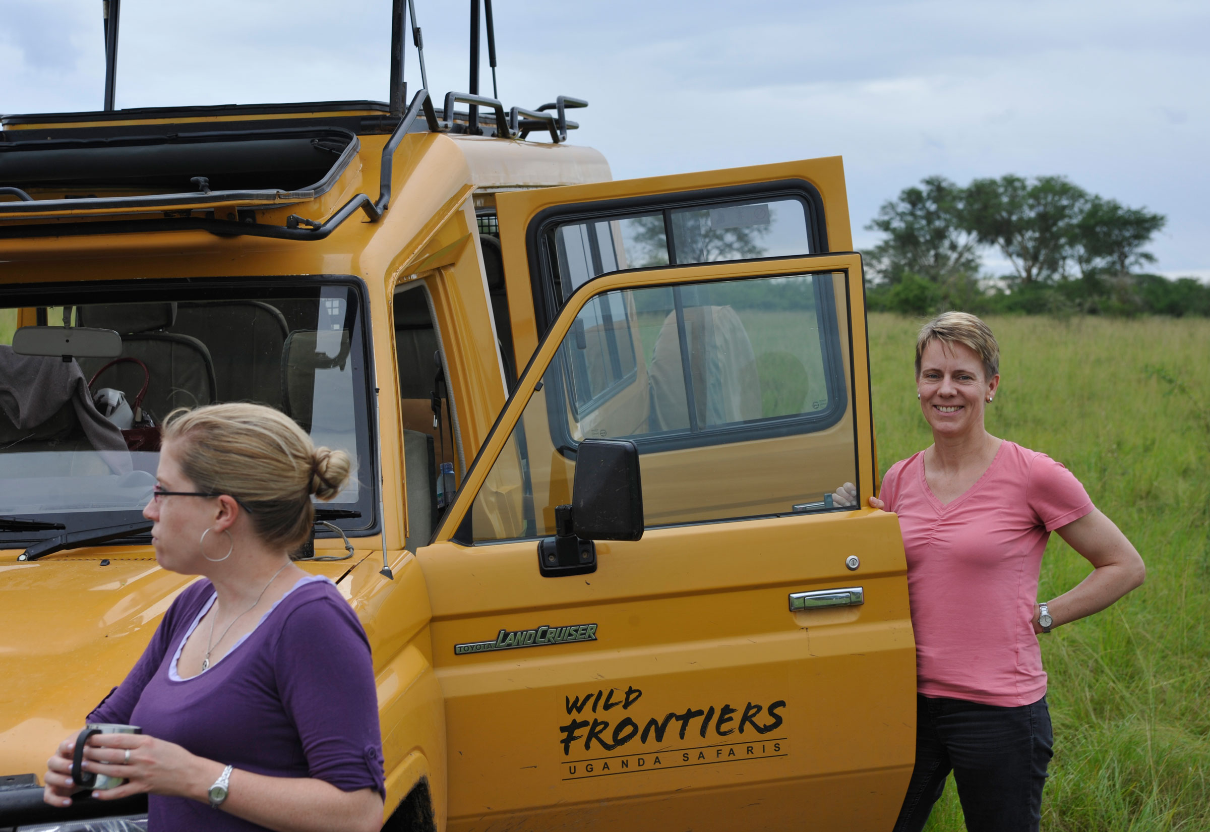 Auf unserer Anfahrt zum Ishasha Wilderness Camp regnet es, und es zeigt sich keiner der berühmten baumkletternden Löwen. Dafür sehen wir Ebenen voller Topis, denen der Regen nichts auszumachen scheint. Im Gegensatz zum etwas langweiligen zentralen Teil des Queen Elizabeth Nationalparks, in dem man vor lauter Büschen nicht so viele Tiere sieht, breitet sich hier ein weites, sanft gewelltes Buschland mit offenen Savannen und goldenem Gras aus. Die Wiesen dampfen vom Regen, was dem Ganzen eine fast verwunschene Atmosphäre gibt.