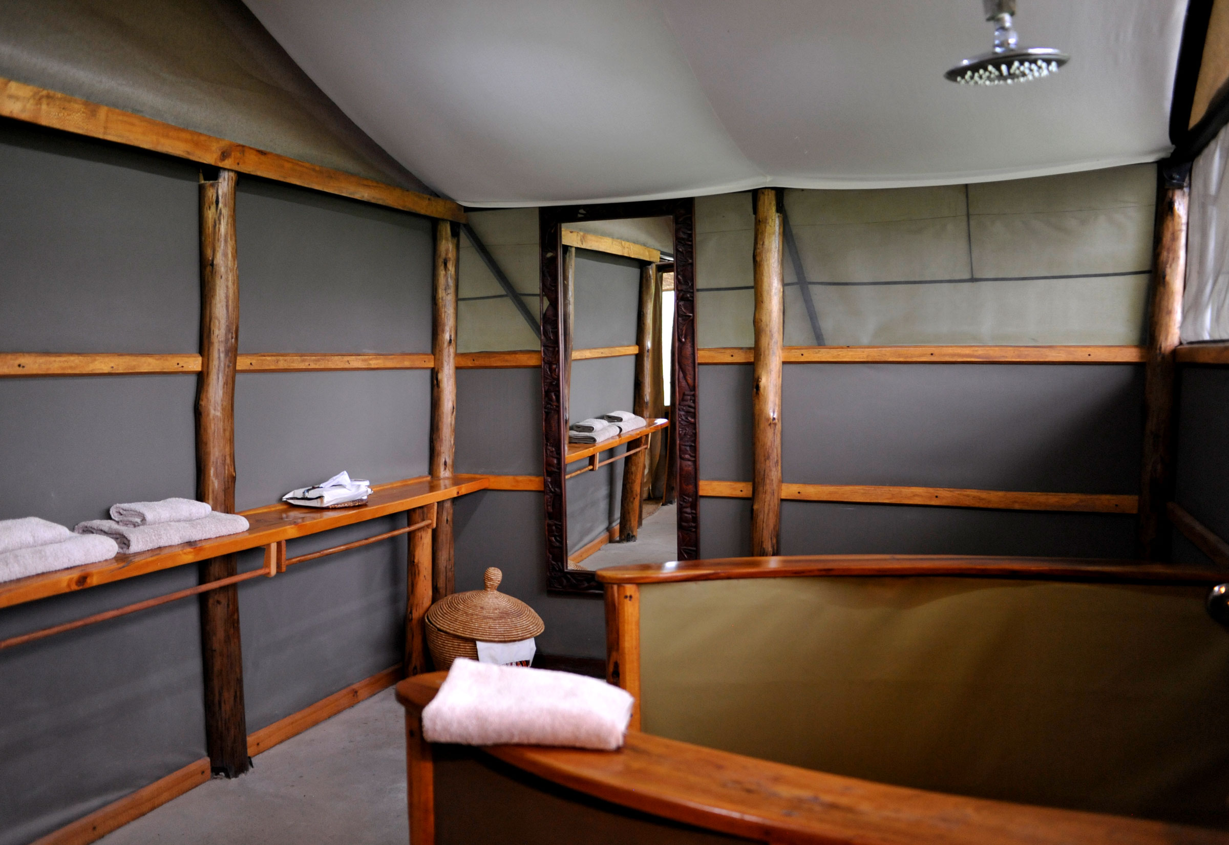Wir erreichen das Ishasha Wilderness Camp gegen 16 Uhr und es scheint sich eingeregnet zu haben. Die Nachmittagspirschfahrt lassen wir daher sausen. Das kommt mir ganz gelegen, um in Ruhe in der Lounge einen Tee zu trinken und das (recht langsame) W-LAN zu nutzen und etwas Ordnung in mein Gepäck zu bringen. Ach ja, und um eine heiße Dusche zu nehmen. Heißwasser gibt es auf Vorbestellung ans Zelt geliefert, und es ist bereits perfekt temperiert. Was für eine schöne, kräftige Dusche! Nur mit dem Wasserverbrauch muss man vorsichtig sein, denn irgendwann ist der Eimer leer.