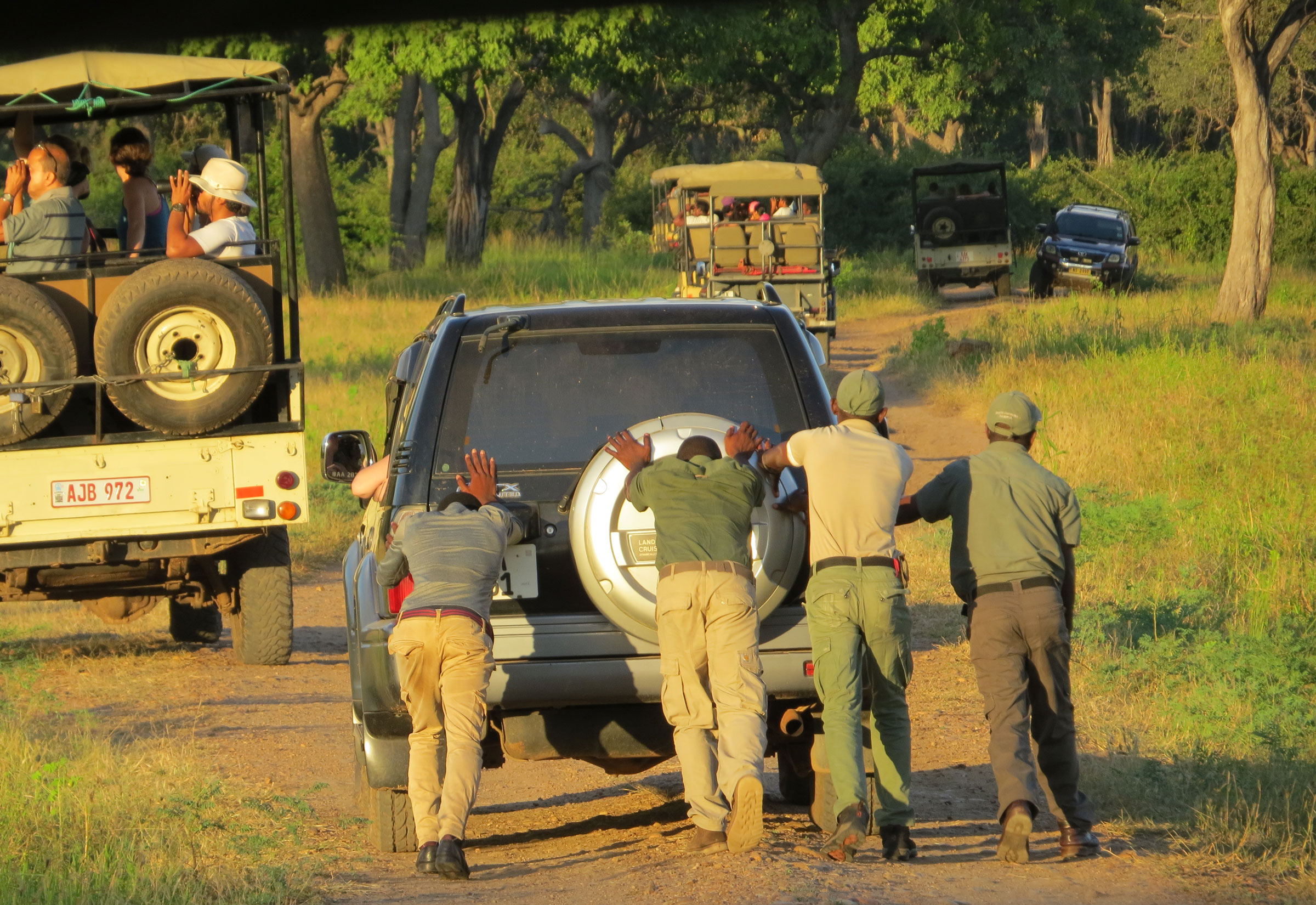Wir verbringen zwei herrliche Tage eigentlich fast nonstop auf Pirschfahrten. Die geplante Pirschwanderung muss wegen des hohen Grases in der Regenzeit leider ausfallen. Wir haben eine Zusatzpirschfahrt für 50 Dollar extra gebucht. Insgesamt sind wir also viermal im Park unterwegs, jeweils zweimal am frühen Morgen bis zum späten Vormittag und am Nachmittag in die Dunkelheit hinein, inklusive Sundowner.