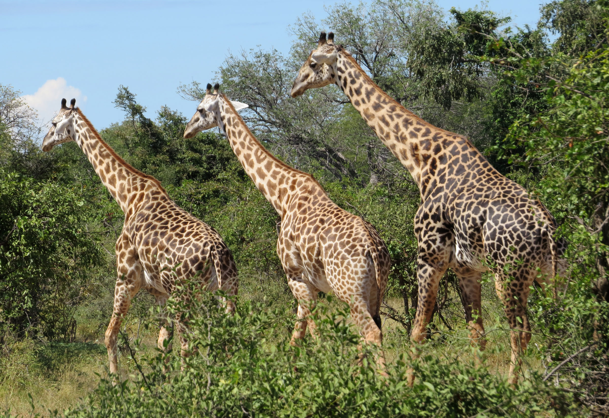 Die Anlage liegt außerhalb des Parks, das ist aber den Elefanten, Giraffen und Hippos egal. Sie spazieren hier gern einmal vorbei und haben keine große Scheu vor den Menschen. Beim Lunch besucht uns eine Elefantenherde. Die kleinen frechen Affen klauen sogar die Bananen vom Tisch.