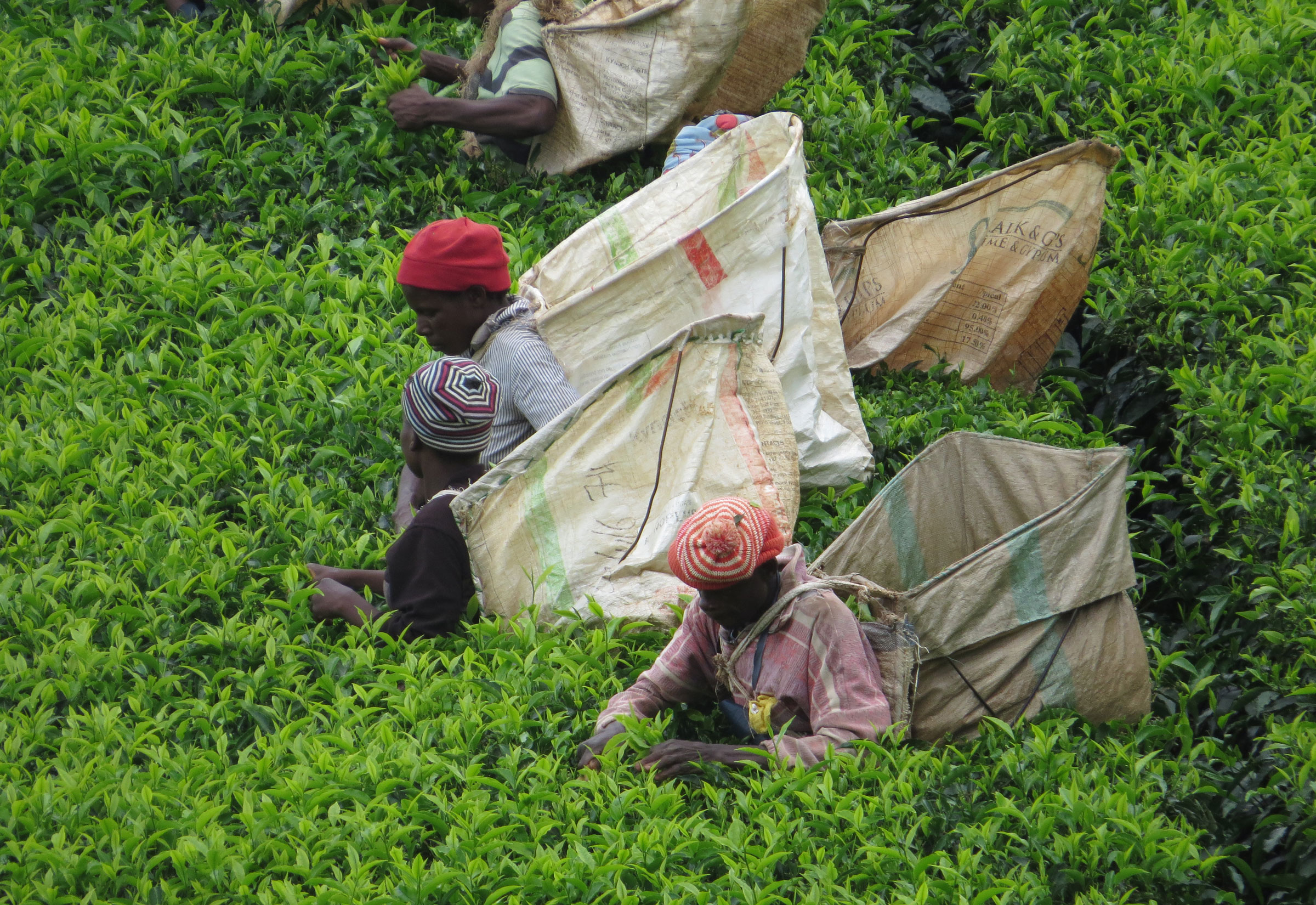 Am nächsten Tag fahren wir weiter, hinein in eine bezaubernde hügelige Landschaft. Unterwegs kommen wir durch einige Dörfer, wo Markttag ist. Die Familien hier bebauen meist ein kleines Stück Land, und was sie nicht selbst verbrauchen, wird auf dem Markt gegen anderes getauscht. Rechts und links der Straße tauchen immer mehr sattgrüne Felder mit niedrigen Büschen auf – hier wird Tee angebaut. Wir biegen in das Satemwa Tea Estate ab, eine der größten Tee-und Kaffeeplantagen hier in der Gegend.