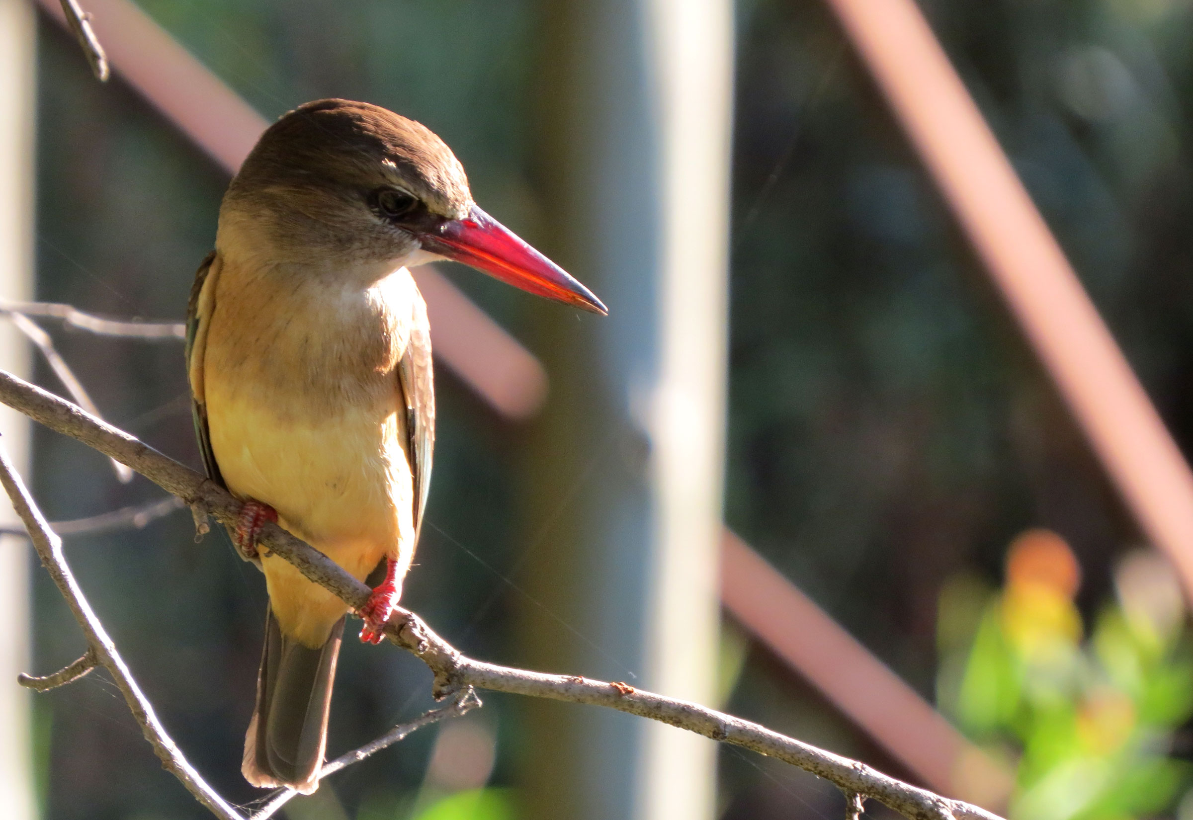 Die ersten Sonnenstrahlen tauchen das Ufer des Kwando in goldenes Licht und Nebel hängt zwischen den Bäumen und Büschen. Es geht auf eine Morgenpirschfahrt in den nahe gelegenen Mudumu Nationalpark. Wir begegnen zunächst nur einigen Gnus, Zebras, Warzenschweinen und Hippos, dazu einem Gelbschnabel-Toko und einem Lärmvogel (auf Englisch „Go away-Bird“ genannt, weil er einen sehr lauten und markanten Warnruf hat, der andere Tiere aufschreckt, wenn Fressfeinde in der Nähe sind). Nicht sehr ergiebig, da geht sicher noch mehr.