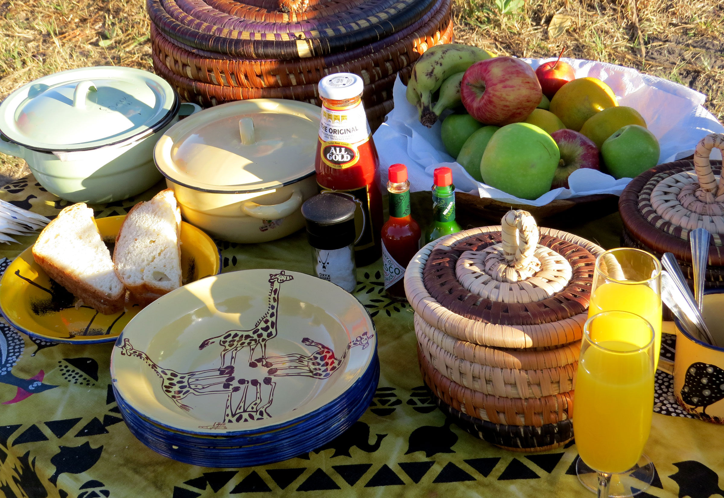 Nach gut einer Dreiviertelstunde biegen wir um die Ecke und sehen einen Tisch am Ufer des Flusses aufgebaut mit zwei winkenden Damen – eine davon ist Anke, die andere eine junge Mitarbeiterin des Camps. Sie haben ein Bush-Breakfast mit vielen leckeren Sachen vorbereitet. Ein Highlight sind die selbstgebackenen „Rusks“ – der typische Zwieback, den die Farmer zum Frühstück essen, bevor sie die Morgenarbeiten erledigen und dann zum richtigen Frühstück (oder Brunch) zurückkommen. Ich kannte sie bisher nur in der gekauften Variante. Diese hier sind einfach köstlich und die Mitarbeiterin ist sichtlich stolz, denn sie hat sie nach dem Rezept ihrer Oma gebacken.