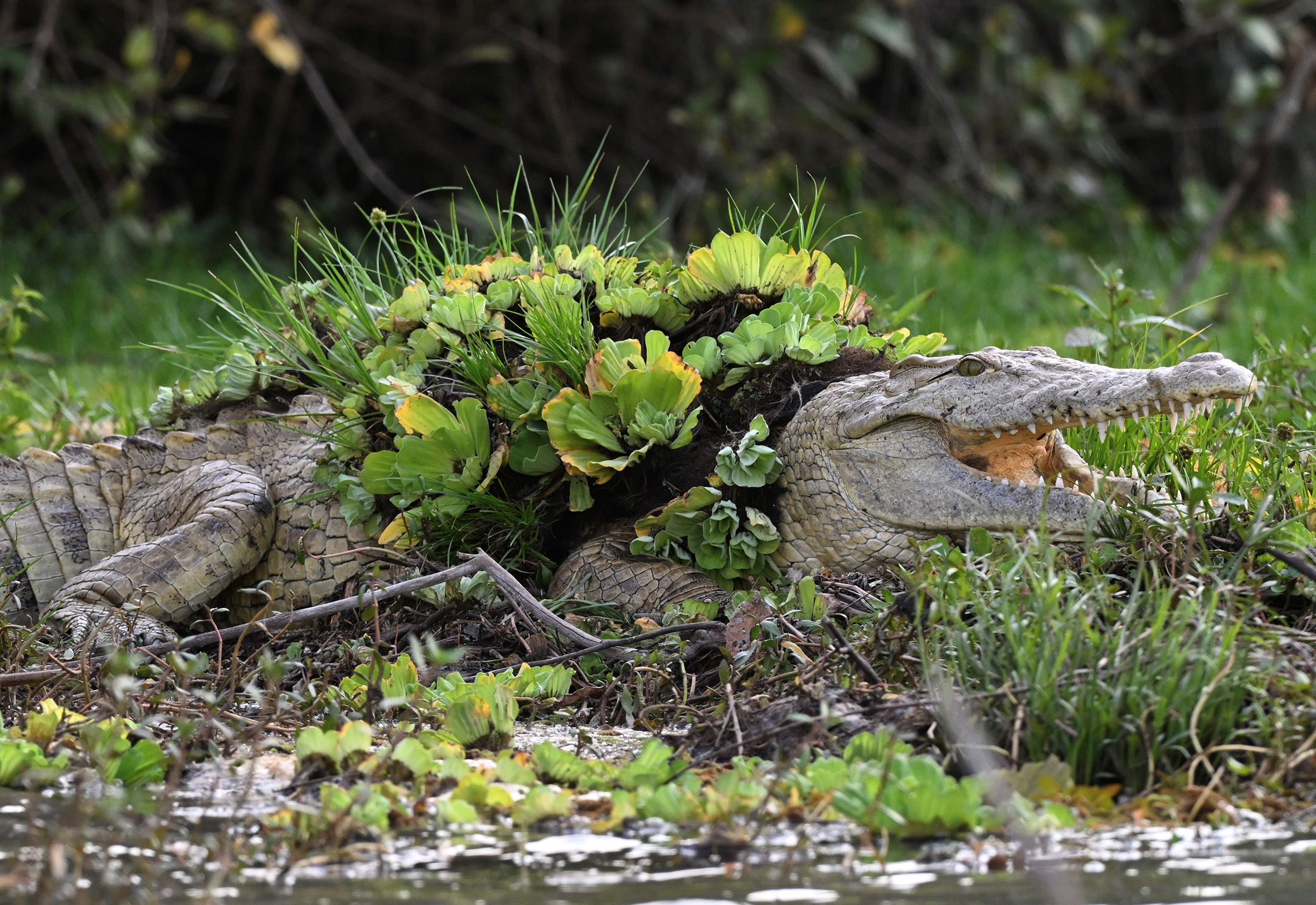 Zum Buschfrühstück erwartet uns dann eine große Überraschung: Am Flußufer sehen wir schon einen schön gedeckten Tisch, und Geoffrey, der Koch sowie Apero, der Kellner, winken uns zu. Sie lachen über unsere erstaunten Gesichter. Es gibt ein wunderbares Frühstück mit Obst, Omelette, Pfannkuchen, Gemüse, Toast und Speck, Kaffee und Tee. Was für ein schönes Erlebnis. Wir bedanken uns sehr herzlich für alles. Wir fahren weiter zu einem Teil des Sees, der mit Sea Cabbage bedeckt ist und in dem viele Flusspferde und Krokodile leben. Wir sehen Reiher, Ibisse, African Jacanas, Gänse und Enten, Hammerkopps und viele kleinere Wasservögel. Auch Büffel und Gnus kommen zum Trinken. Es ist einfach wunderschön.
