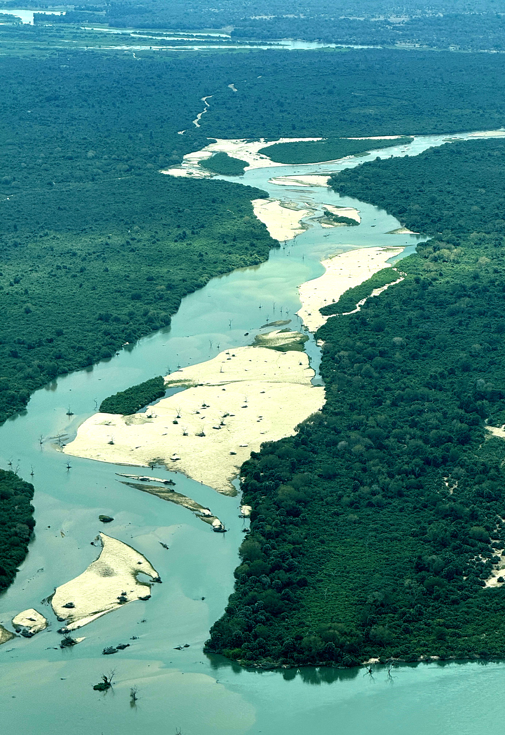 Am nächsten Morgen geht es schon um 6:30 Uhr los, und nach einem schnellen Frühstück bringt uns der Fahrer zum Terminal des Flughafens, von dem die lokalen Flüge starten. Unser Flug mit Coastal Air zum Jongomero Airstrip im Ruaha Nationalpark dauert ca. zwei Stunden. Sieht man zunächst noch viel Besiedlung und Palmenwälder, wird es nach und nach einsamer und die Landschaft wandelt sich zu Wald, Gebirge und kleineren Dörfer. Kurz vor der Landung überfliegen wir den verschlungenen Ruaha River, der noch Wasser führt, und von oben lässt sich nicht genau erkennen, ob es sich um Felsen oder Flusspferde im Flussbett handelt.