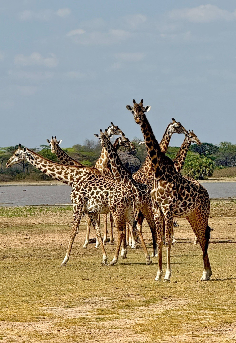 Am nächsten Morgen packen wir unsere Sachen, um 6:30 Uhr soll der Game drive losgehen, der uns dann auch zum Airstrip führen soll. Alle sind gekommen, um sich von uns zu verabschieden. Das rührt uns sehr und es fällt uns schwer, Jongomero mit seinen liebenswürdigen Menschen zu verlassen. Es ist ein ganz besonderes Camp, wunderschön, ruhig und so herzlich. Auf unserem letzten Drive sehen wir noch Hunderte von Geiern in den umliegenden Bäumen, aber es ist kein Kadaver zu sehen. Wir machen unsere letzte Kaffeepause dort, wo wir auch unsere erste gemacht haben als wir von einer Woche ankamen. Wir sehen die Hippos und viele Wasservögel, Bienenfresser, Kingfisher, einen Goliath-Reiher und danken Apollo für die unvergesslichen Tierbegegnungen, die wir mit ihm hatten. Es war ein großartiger Aufenthalt.