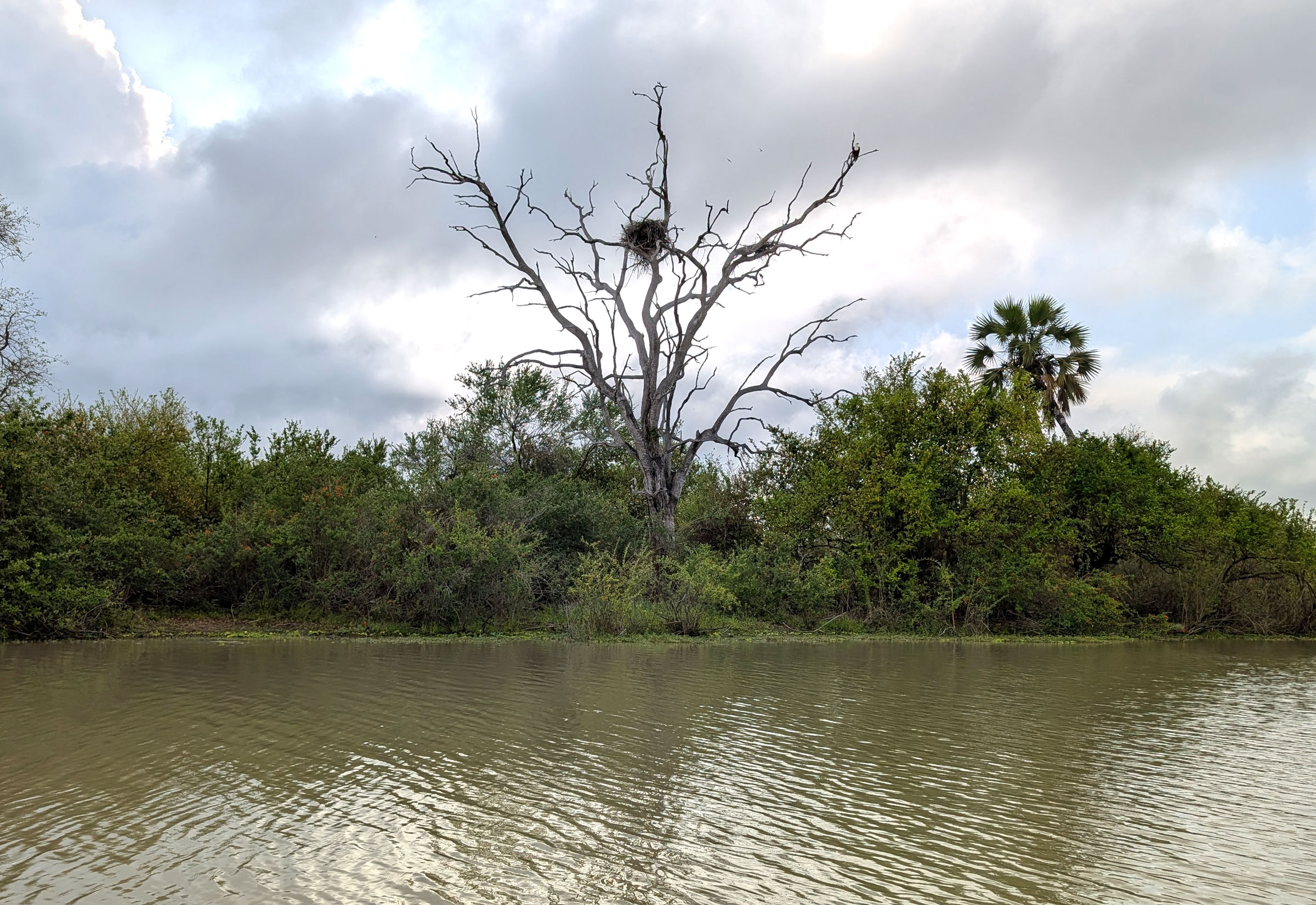 Der Lake Siwandu ist durch einige Flussläufe mit dem Rufiji River verbunden. Wenn man eine Bootssafari auf dem Rufiji River macht, was zum Beispiel vom Rufiji River Camp aus möglich ist, bekommt man nochmals einen anderen Eindruck als auf dem See. Die Ufer des breiten Flusses sind sandig, was mit den Palmen im Hintergrund für einen schönen Kontrast aus Gelb und Grün sorgt. Rund um den See hingegen gibt es nur dichtgrüne Vegetation und kaum freie oder sandige Flächen.