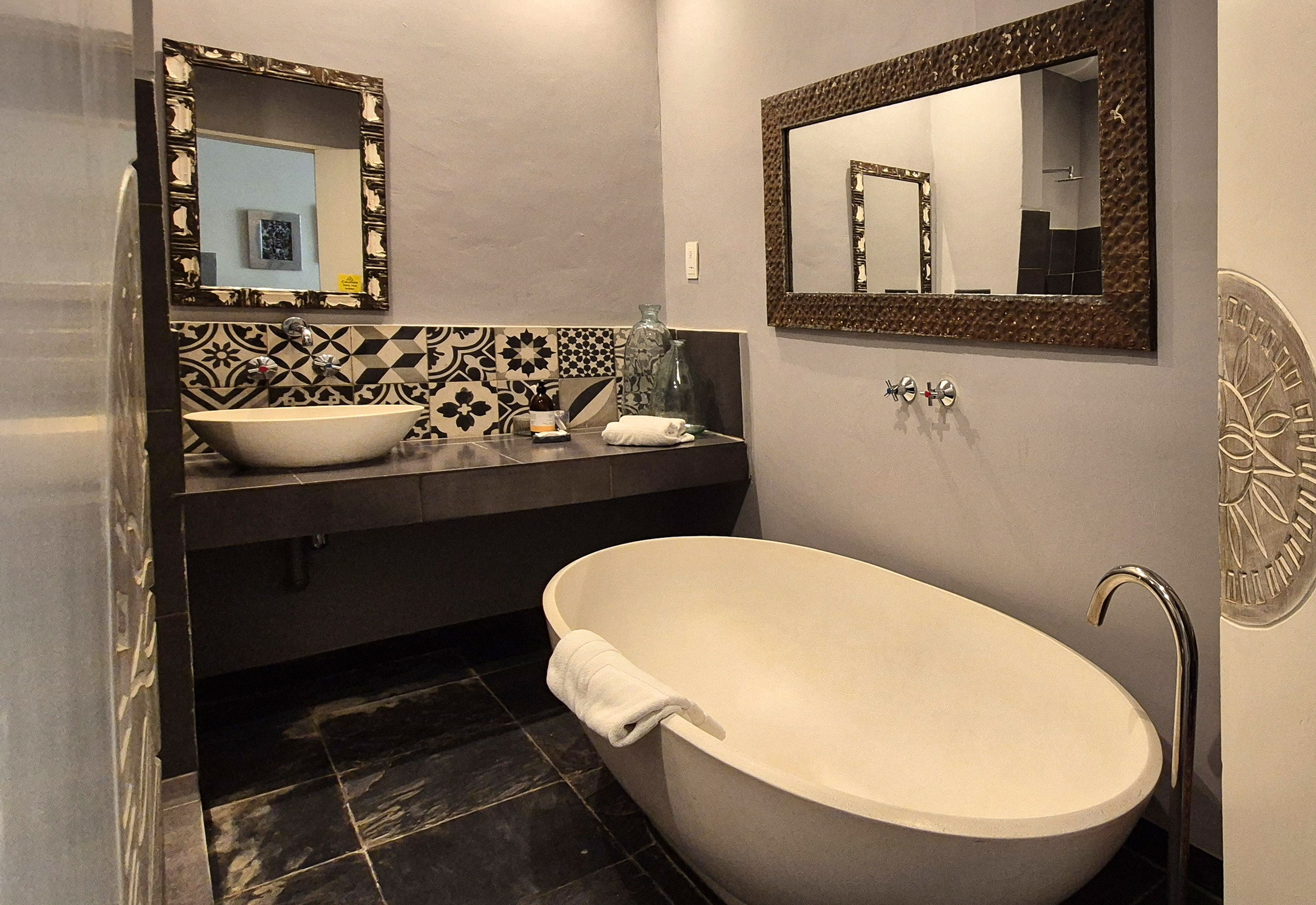 - Eine große Badewanne,