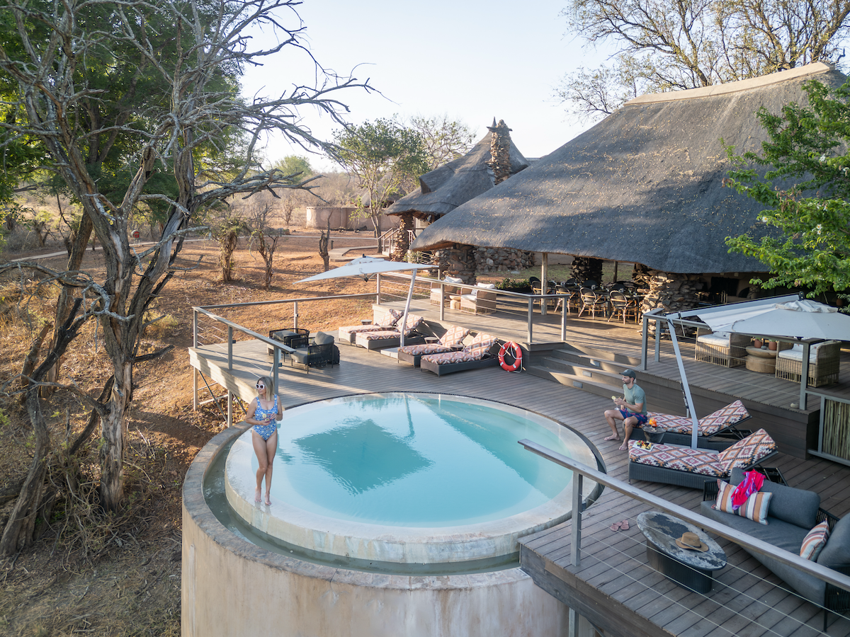 Die Lodge liegt idyllisch am Flussbett des Makhutswi Rivers im Makalali Game Reserve. Eine Fünf-Sterne-Lodge mit Pool und allen Annehmlichkeiten, die man sich wünscht. Besonders schön fand ich das Restaurant im Freien. Man genießt köstliches Essen mit Blick auf das Flussbett. Auch die Suiten an sich sind wunderschön eingerichtet, haben ein geräumiges Badezimmer mit Dusche und freistehender Badewanne.