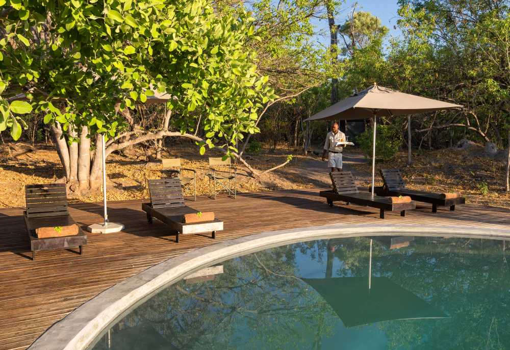 Sie verbringen Ihre Tage mit Pirschfahrten und Bootsausflügen, umgeben vom typischen Geruch, den Geräuschen und der wilden Schönheit dieser Gegend. Aufgrund der abgeschiedenen Lage hat man manchmal die Tiersichtungen ganz für sich allein. Zwischen den Pirschfahrten können Sie im Camp am Pool oder auf der Zeltterrasse entspannen. Am Abend lassen Sie dann den aufregenden Tag bei einem Sundowner ausklingen, sitzen am Lagerfeuer sitzen und bewundern den prachtvollen Sternenhimmel.