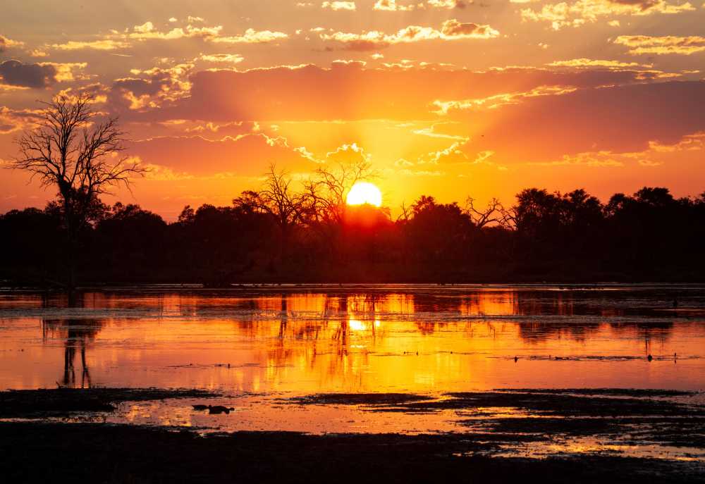 Sie erwachen vom Zwitschern der zahlreichen Vögel, die in den Bäumen am Ufer den Sonnenaufgang begrüßen. Auch größere Tiere sind bereits unterwegs und die Chancen stehen gut, beim Morgenkaffee auf der Terrasse bereits einige Entdeckungen zu machen, bevor es zur Pirschfahrt des Tages oder einem Mokoroausflug geht. Die Seerosenteppiche sind ein zauberhafter Anblick und der markante Ruf des Schreiseeadlers ertönt. Genießen Sie das Plätschern des Wassers unter dem Boot und entdecken Sie die Landschaft mit allen Sinnen.