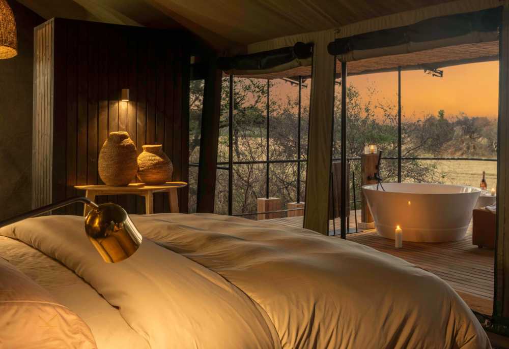 Das Camp besteht aus insgesamt zehn Zeltchalets, Alle Zeltchalets verfügen über ein geräumiges Schlafzimmer, einen Wohnbereich mit Sitzecke, eine Terrasse sowie ein geräumiges Badezimmer mit Dusche, Waschbecken und WC. Ein besonderes Highlight ist die runde Außenbadewanne auf der hinteren Terrasse, sowie eine Außendusche, abgeschirmt von den anderen Zeltchalets. Die Lounge und der Speiseraum bilden das Zentrum der Anlage, zu deren beiden Seiten sich die Unterkünfte anschließen. Jedes Zeltchalet hat deshalb einen unverstellten Blick auf die herrliche Natur und maximale Privatsphäre. Das Camp hat einen Pool.