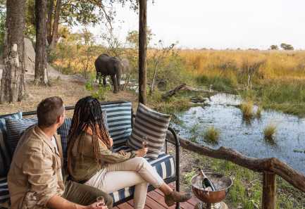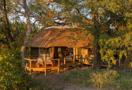 Camp mit eleganten Chalets in der Wunderwelt des Okavango-Deltas