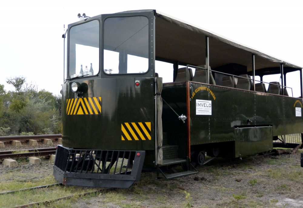 Die An- oder Abreise zur Lodge wird mit dem "Elephant Express" zum Abenteuer. Der Zug verkehrt im Hwange Nationalpark und bietet eine Pirschfahrt auf Schienen.