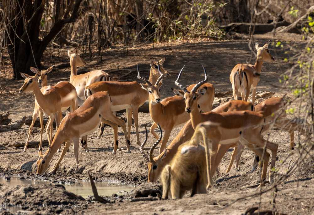 Das Kanga Bush Camp wurde 2010 an einem der kleinen Seen („Pools“) errichtet, nach denen der Nationalpark benannt ist. Kanga liegt in einem privaten Konzessionsgebiet an der einzigen permanenten Wasserstelle, die im trockenen Hinterland des Parks viele Tiere anzieht. Nur wenige Besucher von Mana Pools stoßen bis hierhin vor. Zum Camp gehören sechs komfortable Zelt-Chalets mit eigenem Badezimmer, teils unter freiem Himmel. Ein schattenspendendes Zeltdach spannt sich über das große hölzerne Deck des Camps, auf dem auch die vorzüglichen Mahlzeiten serviert werden. Lassen Sie sich hier in einen der Sessel fallen, nehmen sich ein gutes Buch zur Hand oder genießen Sie den Blick auf die Kanga Pan, auf der immer wieder Tiere auf dem Weg zum Wasser zu sehen sind.