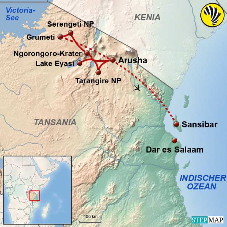 Tansania gehört zu den besten Reisezielen für eine Safari. Mit diesem kompakten Reiseverlauf erleben Sie alle bekannten Nationalparks Nordtansanias mit einem privaten deutschsprachigem Guide. Anschließend folgen ein paar entspannte Strandtage auf der Gewürzinsel Sansibar.