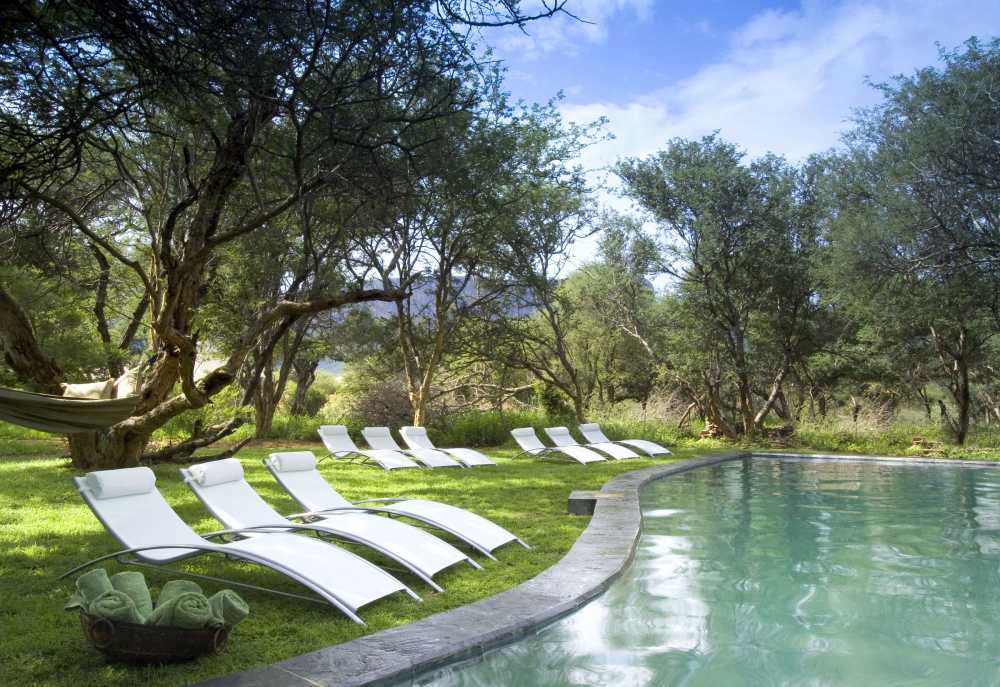 Luxuriöse Zeltlodge im Marakele Nationalparks mit Blick auf die Waterberge