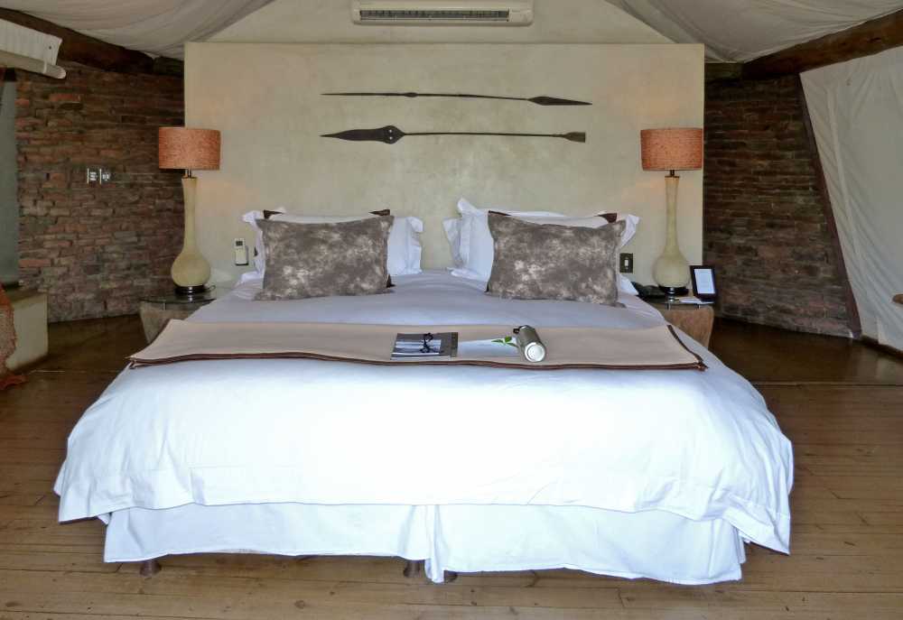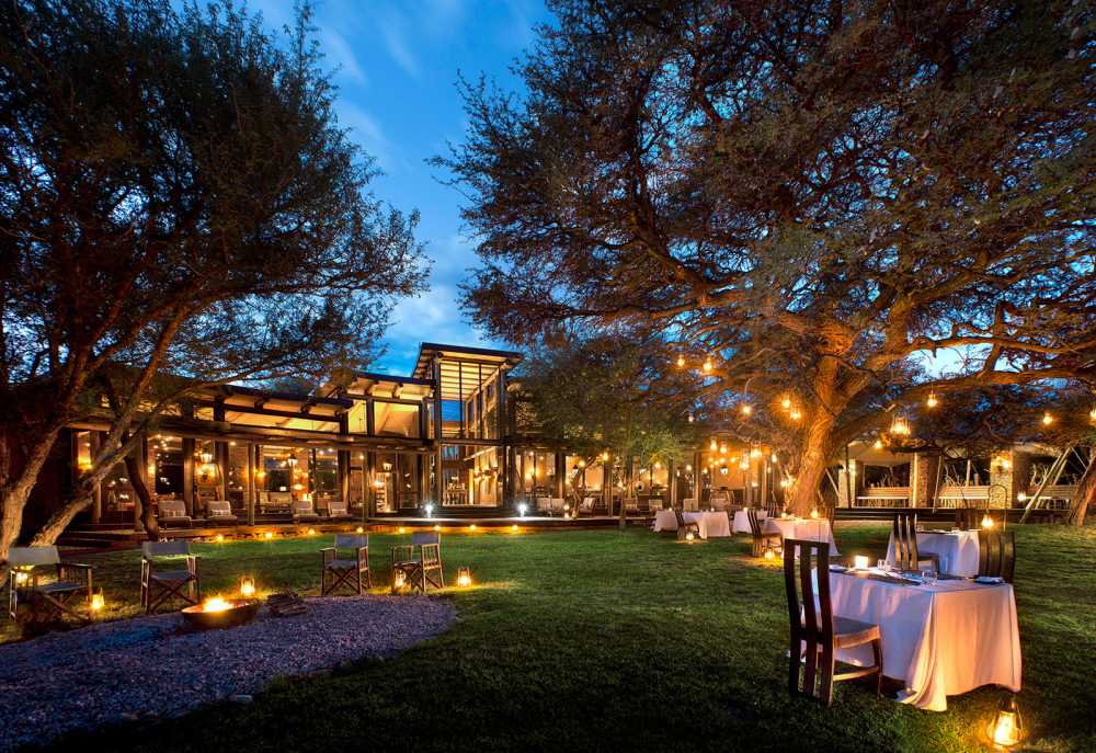 Komplettiert wird Ihr Aufenthalt aber erst durch die sehr hochwertige Ausstattung der Lodge, zu der insgesamt 15 Suiten für maximal 30 Gäste gehören. Im Hauptbereich finden Sie neben der beeindruckenden Empfangslobby auch den Speisebereich, die Bar und einen großen Swimmingpool. Große Panoramafenster sorgen stets für einen ungehinderten Blick auf die Landschaft und das Wasserloch, das sich unterhalb des Hauptbereiches befindet. Bei geeignetem Wetter wird das Abendessen im Freien entweder auf dem Rasen vor der Lodge unter Leadwood-Bäumen oder aber in der Boma serviert. Jede der gemauerten Zeltdach-Suiten ist geschmackvoll und modern eingerichtet. Zur Ausstattung zählen ferner ein offenes Bad mit freistehender Wanne sowie eine Innen- und Außendusche, Klimaanlage, Minibar und Deckenventilatoren.