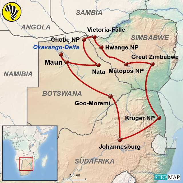 An- und Abreise: Hinflug nach Johannesburg mit Ankunft am Tag vor Reisebeginn. Rückflug ab Johannesburg am Abend des letzten Reisetages (nach 20 Uhr), besser erst am darauffolgenden Tag. Fragen Sie uns nach einem passenden Flugangebot.