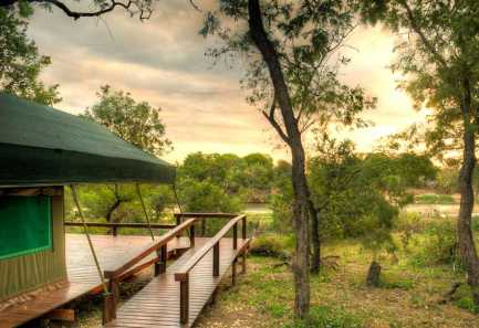 Kleine komfortable Lodge am Ufer des Sand River im Sabi Sands Wildreservat