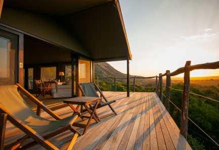 Luxuriöse Zeltlodge im Marakele Nationalparks mit Blick auf die Waterberge