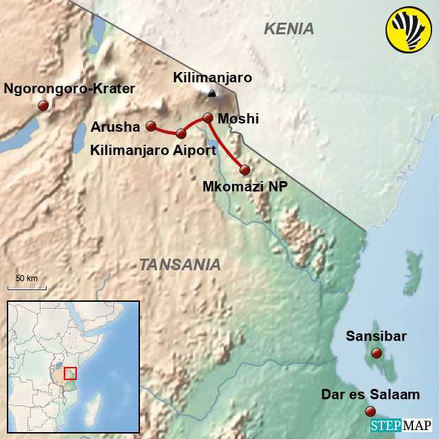Am Morgen starten Sie von der African View Lodge Richtung Osten. Auf dem Weg zur alten Sultansstadt Moshi können Sie bei klarem Wetter einen Blick auf den Kilimanjaro werfen. Ab dem Ort Himo prägen mächtige Baobabs das Landschaftsbild, und links der Straße erblicken Sie die Pare Mountains. Nach gut drei Stunden Fahrt erreichen Sie das Eingangstor. Ihre Unterkunft, das Mkomazi View Camp, ist nur noch eine kurze Pirschfahrt entfernt.
