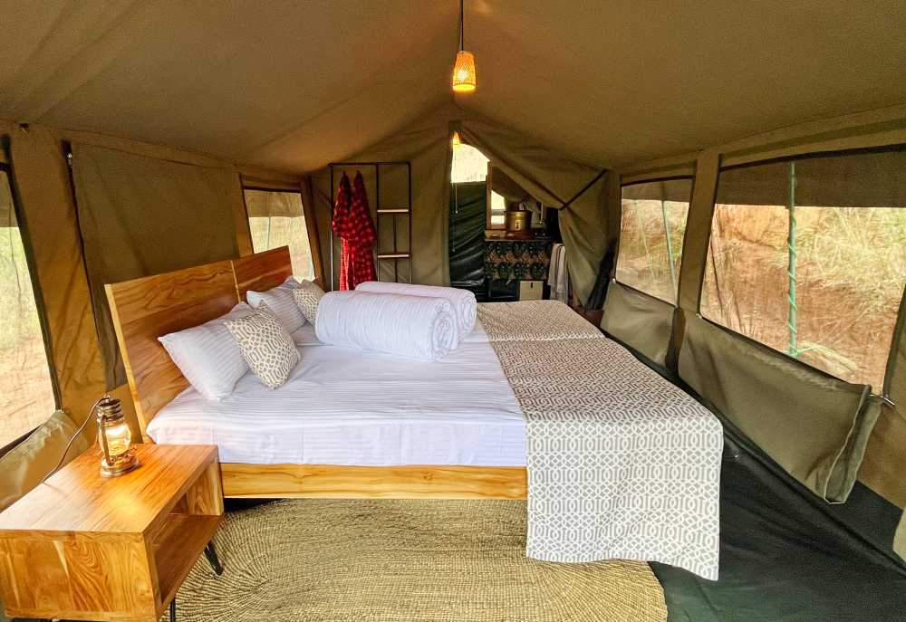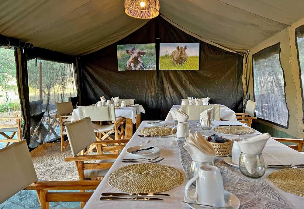 Das kleine Mkomazi View Camp mit sechs Wohnzelten liegt einsam an einer Hügelkette mit Blick in eine weite Ebene. Im Messezelt werden Sie kulinarisch verwöhnt, und am Abend genießen Sie authentisches Safari-Flair am Lagerfeuer unterm Sternenhimmel.