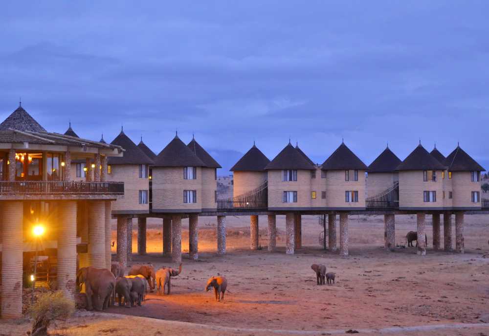 Die berühmten Tsavo-Löwen mit ihrer wenig ausgeprägten Mähne sind selten, aber vielleicht haben Sie Glück und begegnen den scheuen Tieren. Der Weg führt tief in die Hügellandschaft des Tsavo West Nationalparks. Hier ist es durch Quellen stellenweise üppig grün. Ihre Unterkunft für die nächsten zwei Tage ist schon vom Anblick her spektakulär. Die an die Rundhütten der Massai erinnernden Häuser der Salt Lick Safari Lodge wurden auf Pfählen errichtet, die so hoch sind, dass Elefanten bequem unter ihnen durchlaufen können. Die Zimmer wurden zu beiden Seiten eines großen Haupthauses angeordnet, in dem sich das Restaurant und die Bar sowie eine große Terrasse befindet, vor der sich regelmäßig die Dickhäuter an einem Wasserloch versammeln. Noch spektakulärer ist der Anblick von einem unterirdischen „Hide“, der vom Haupthaus durch einen Tunnel verbunden ist. Sie können den Elefanten auf „Fußhöhe“ begegnen und ganz besondere Fotos schießen.