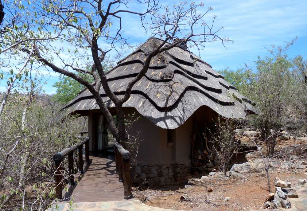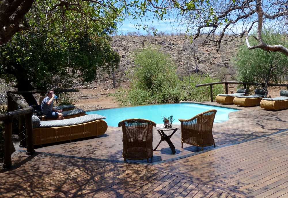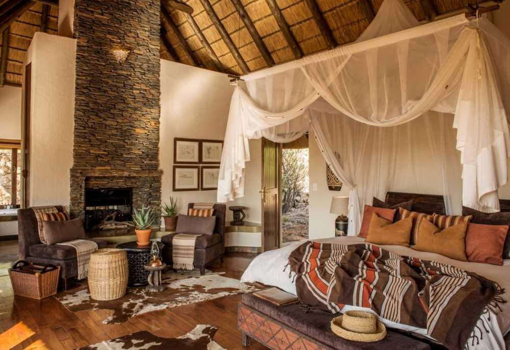 Die Suiten und Chalets sind fest gemauert und riedgedeckt. Die geräumigen Unterkünfte verfügen über schöne Holzfußböden, einen Kamin und als besonderes Highlight neben einer Badewanne mit Aussicht auch über eine fest gemauerte Außendusche. Von der Terrasse aus schauen die Gäste in das Buschland des Wildreservates. Im Hauptbereich der Lodge gibt es einen kleinen Pool, eine gut sortierte Bar und einen Speiseraum. Der Koch der Lodge verwöhnt die Gäste mit einheimischen und internationalen Spezialitäten und guten Weinen.